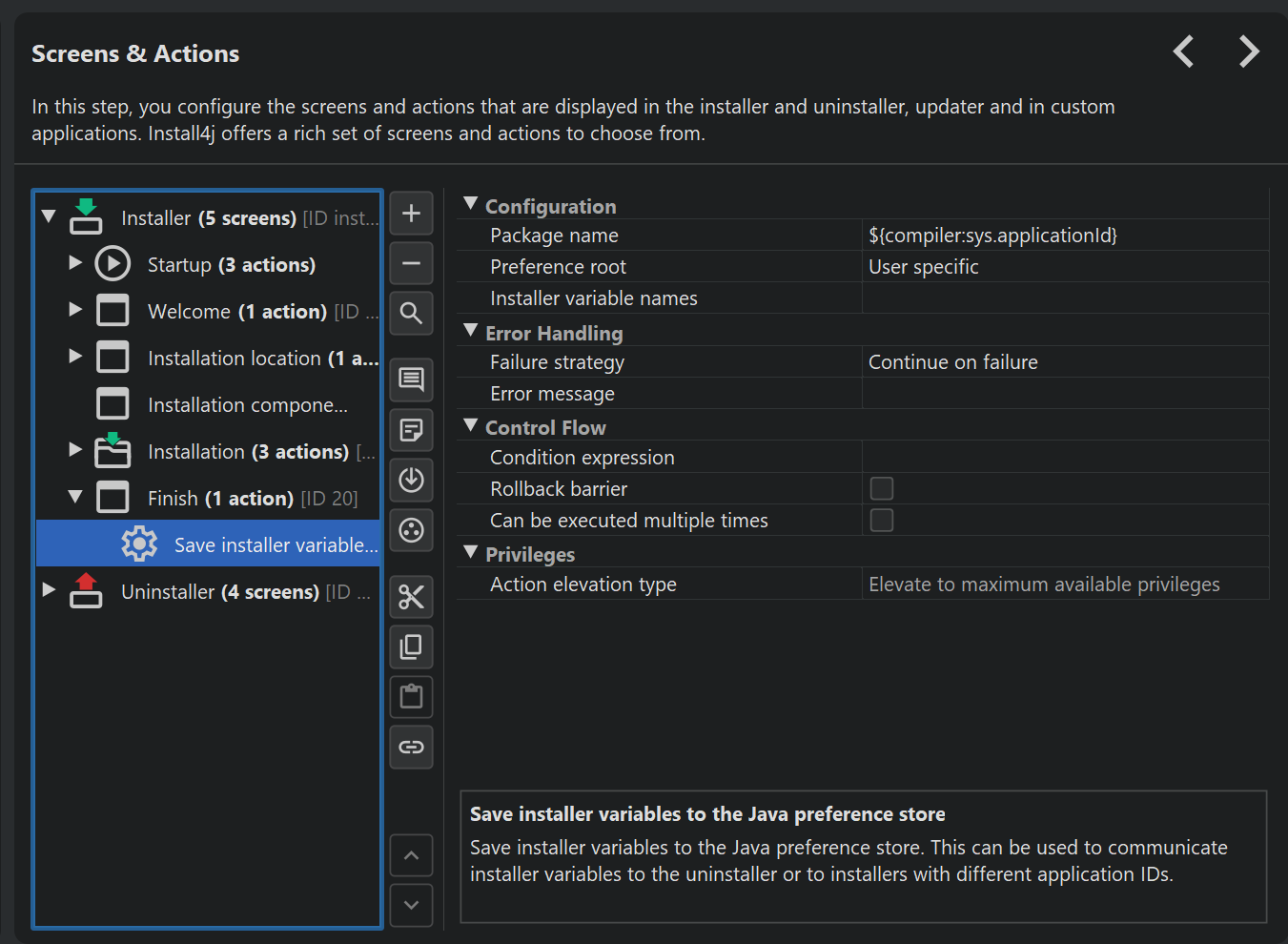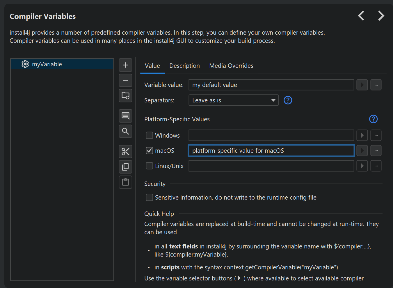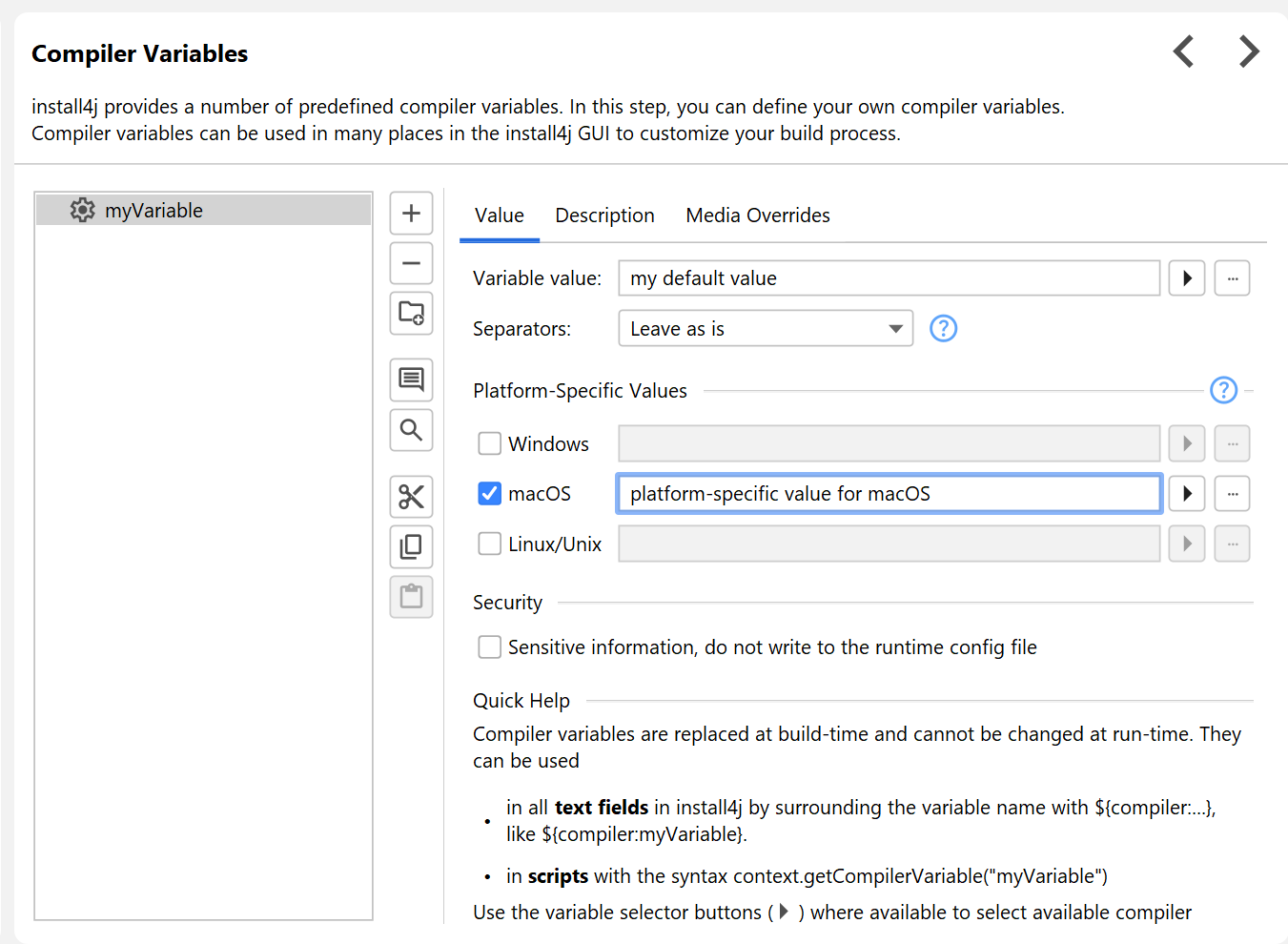 Compiler variables are replaced by the install4j compiler when the project is built. -