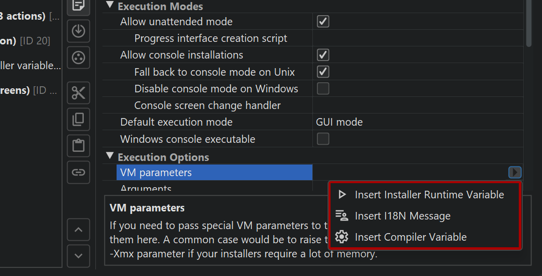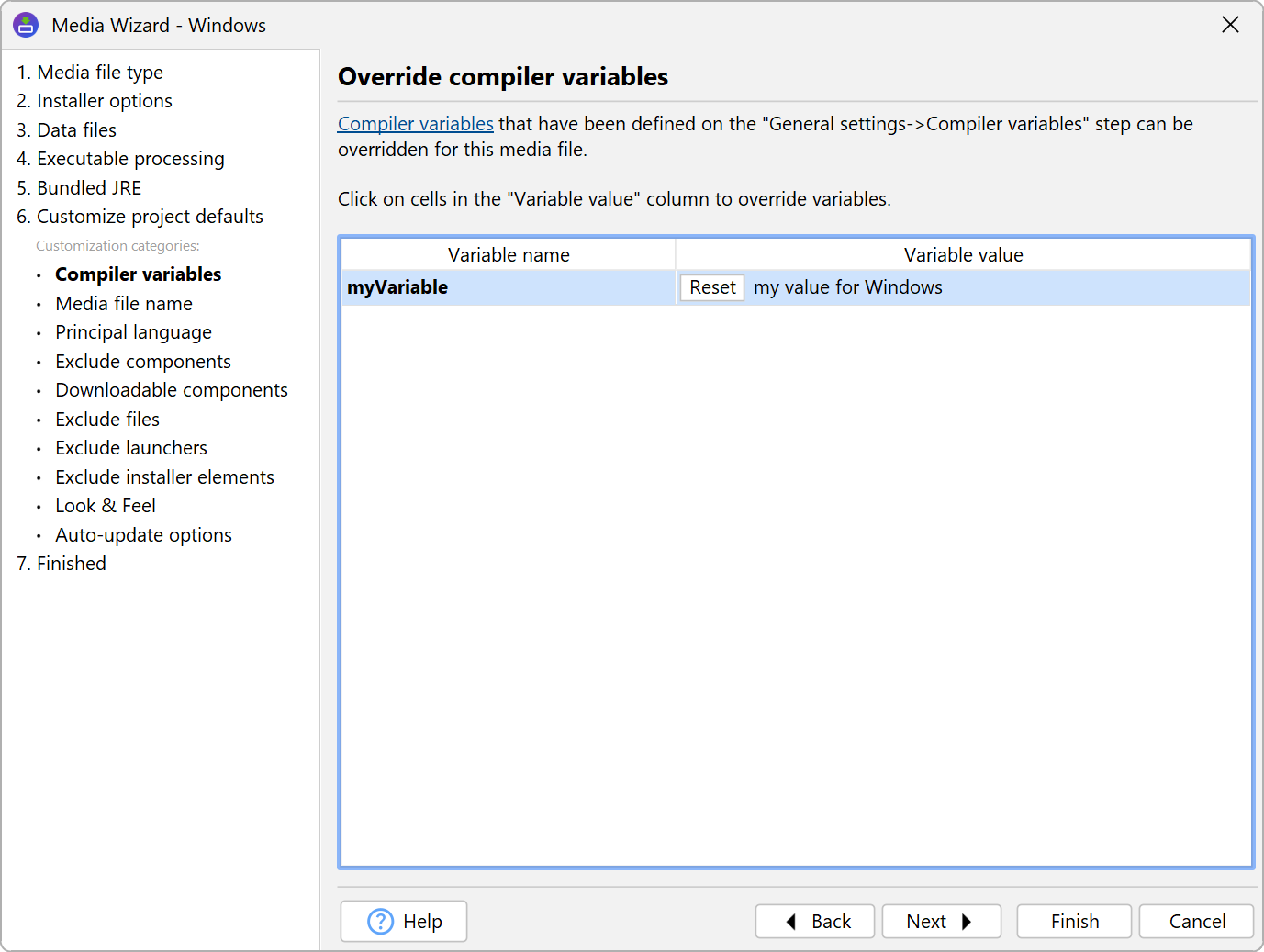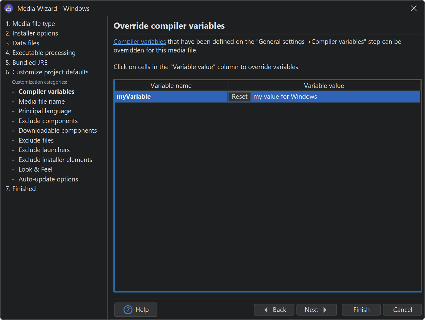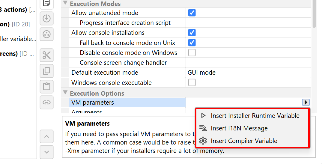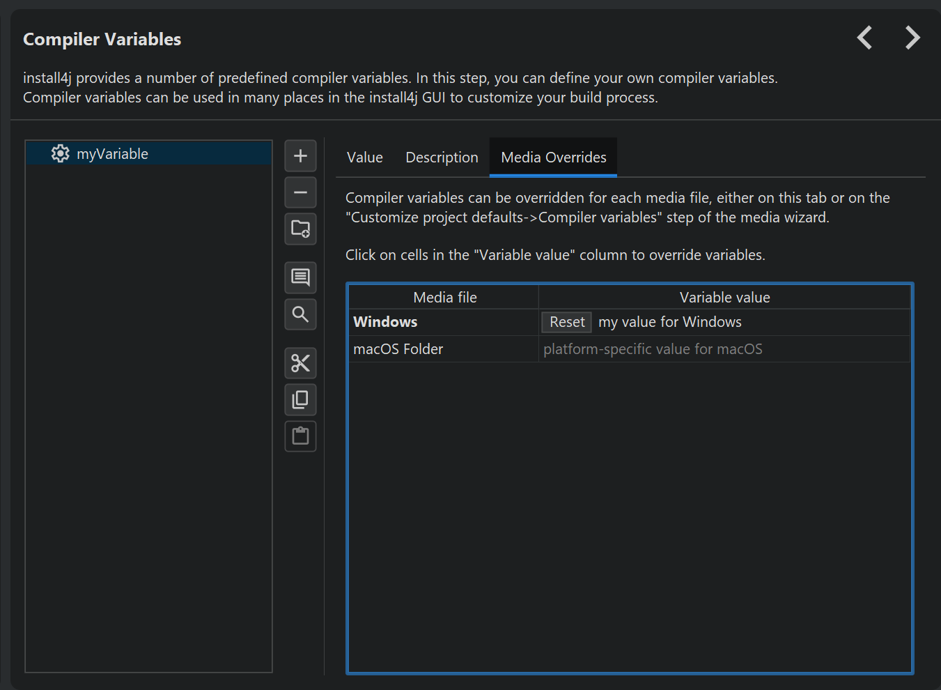 Compiler variables are replaced by the install4j compiler when the project is built. -