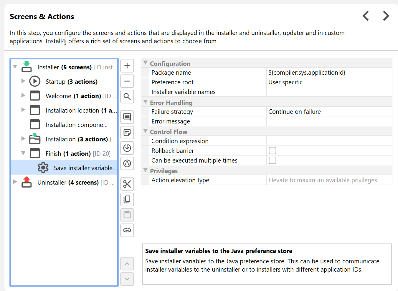installer variables can be saved to the Java preference store. com.install4j.api.launcher.Variables