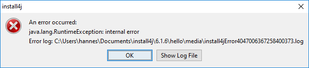 If an exception is thrown in the installer, it prepares an error log and informs the user about its location