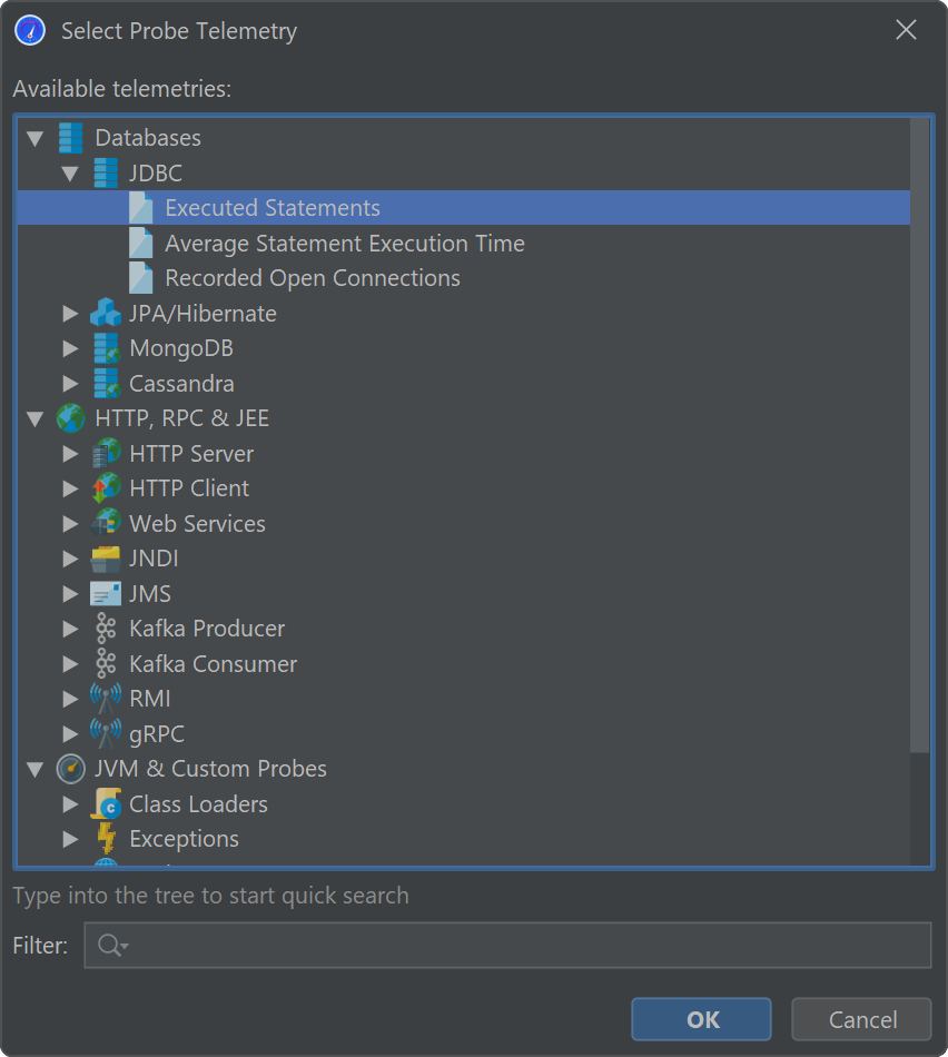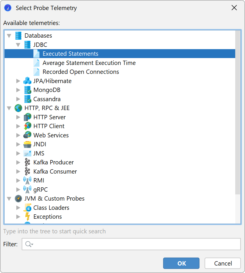 systems in the JVM and important frameworks. Probes have telemetries that are displayed in the corresponding
