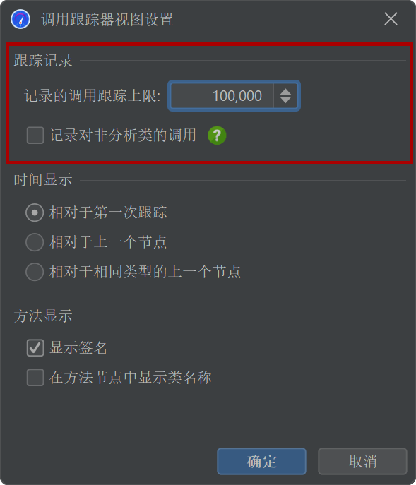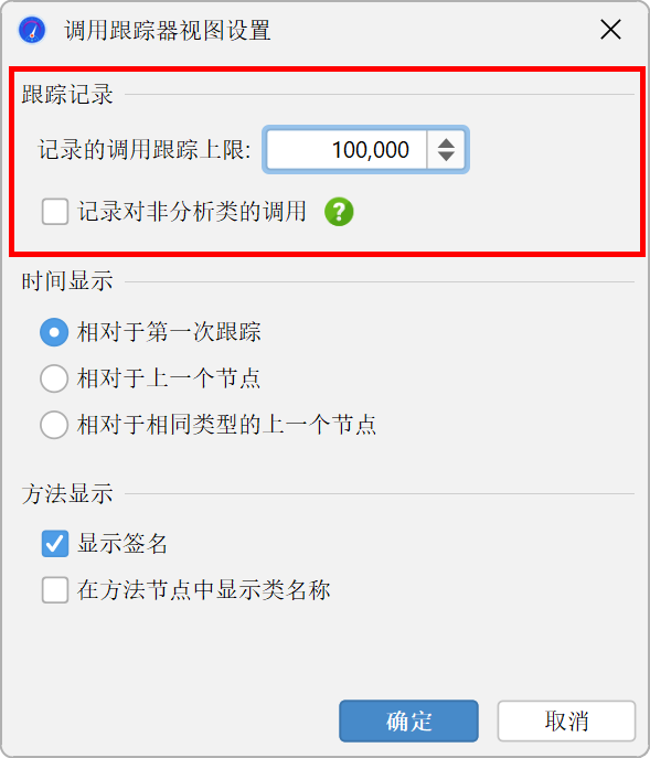 只有在方法调用记录类型设置为插桩时,调用跟踪才有效。采样不跟踪单个方法调用,因此从技术上讲无法通过采样收集调用跟踪。对紧凑过滤类的调用在调用跟踪器中记录,就像在调用树中一样。如果您只想关注自己的类,可以在视图设置中排除这些调用。
