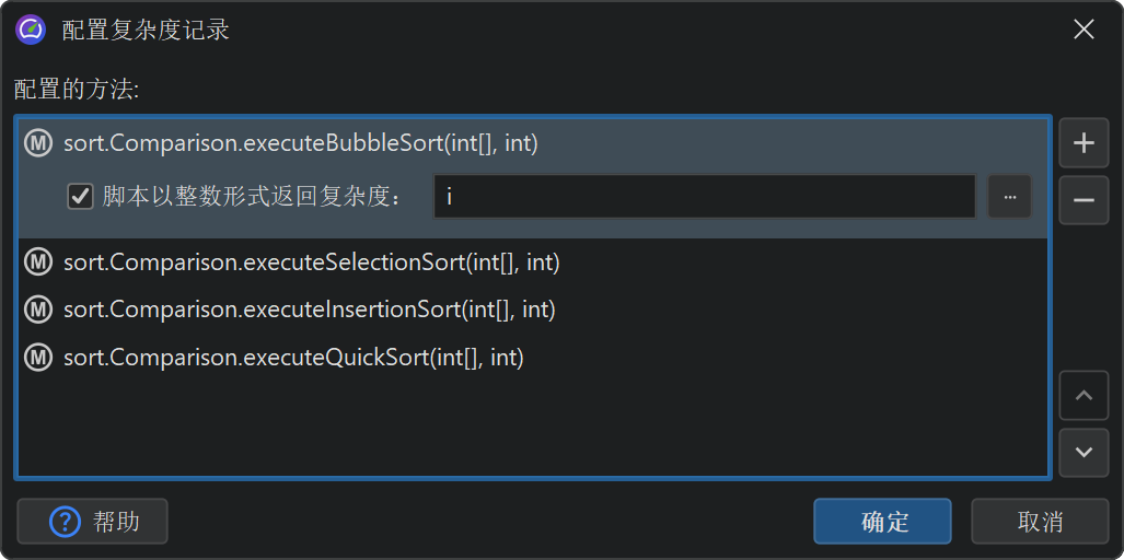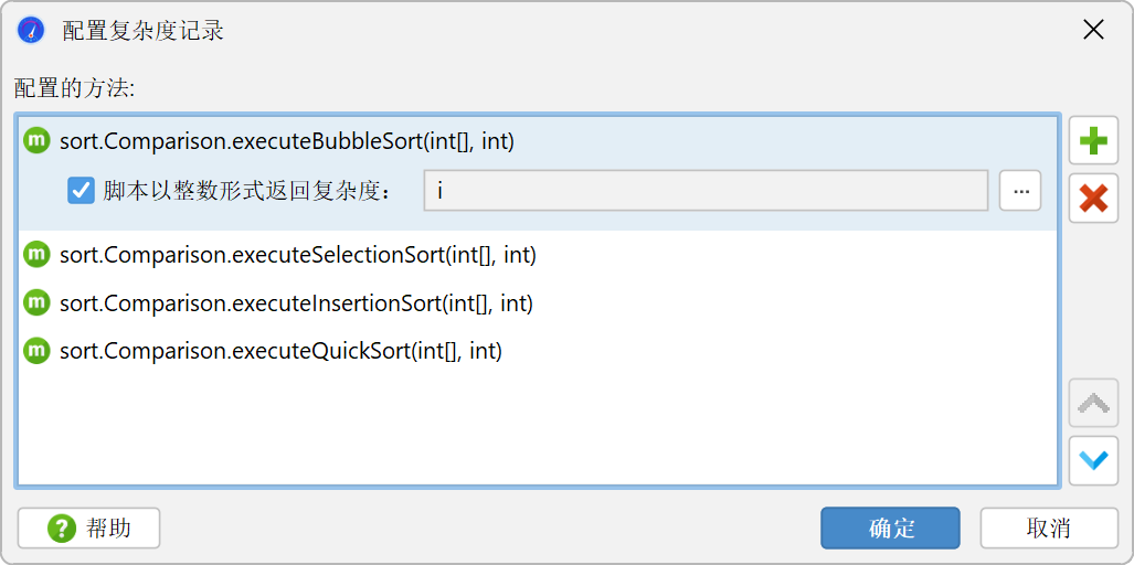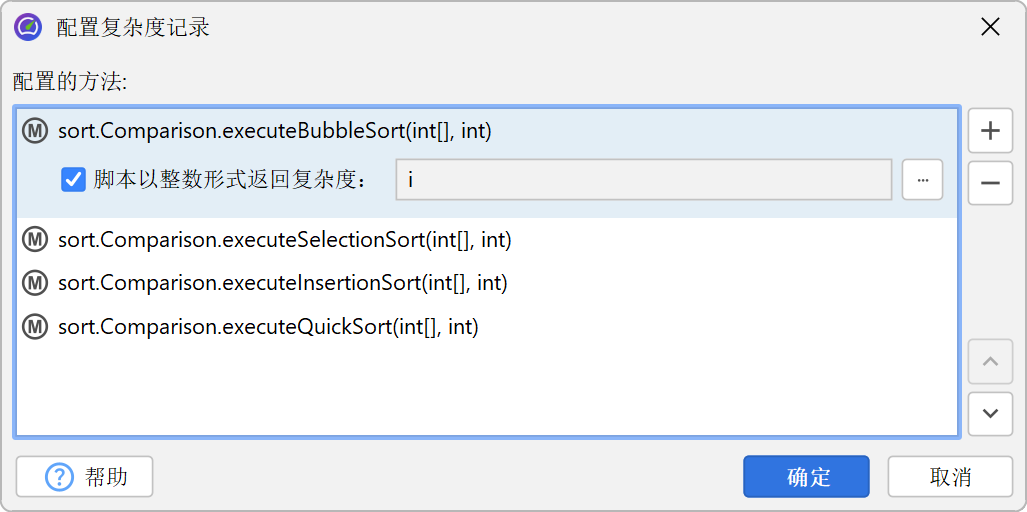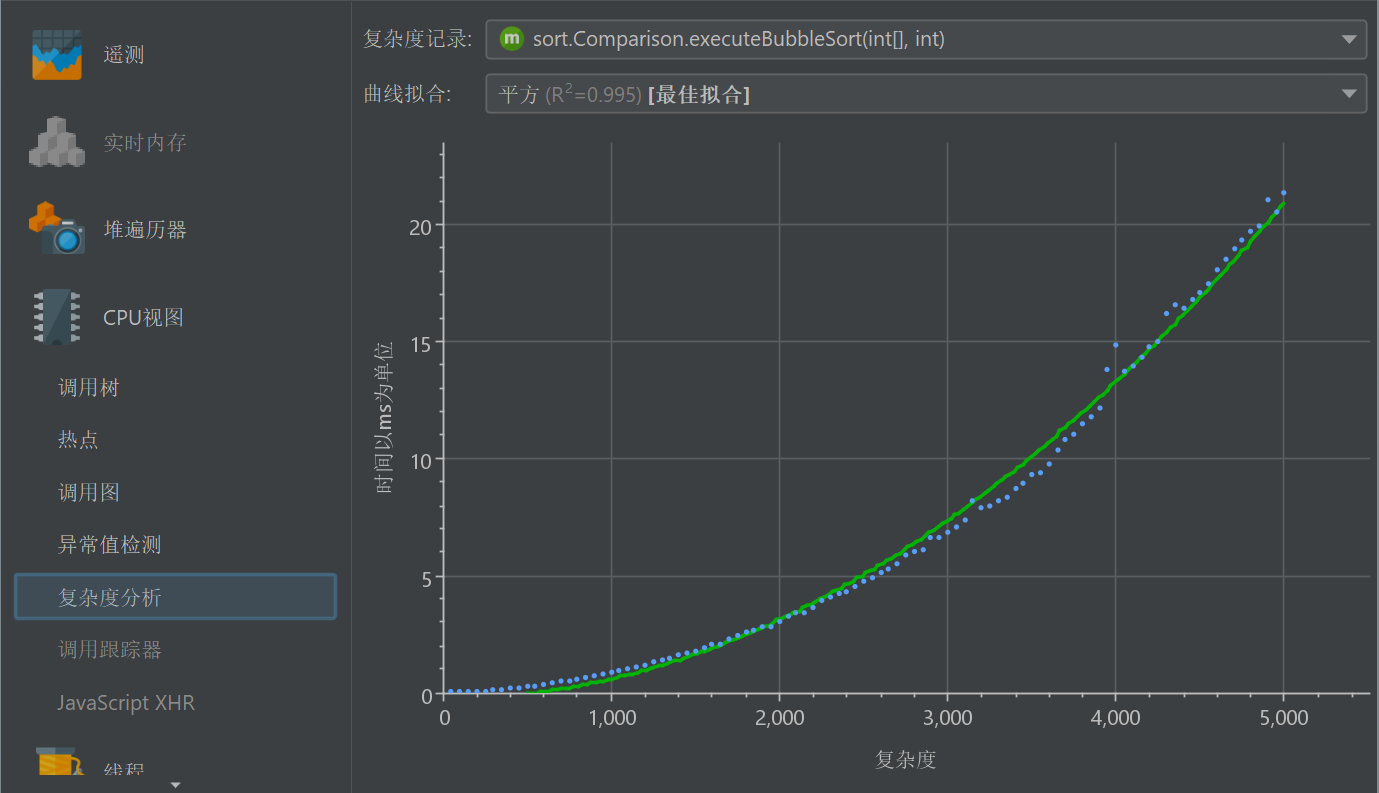 复杂性分析视图允许您根据方法参数调查所选方法的算法复杂性。