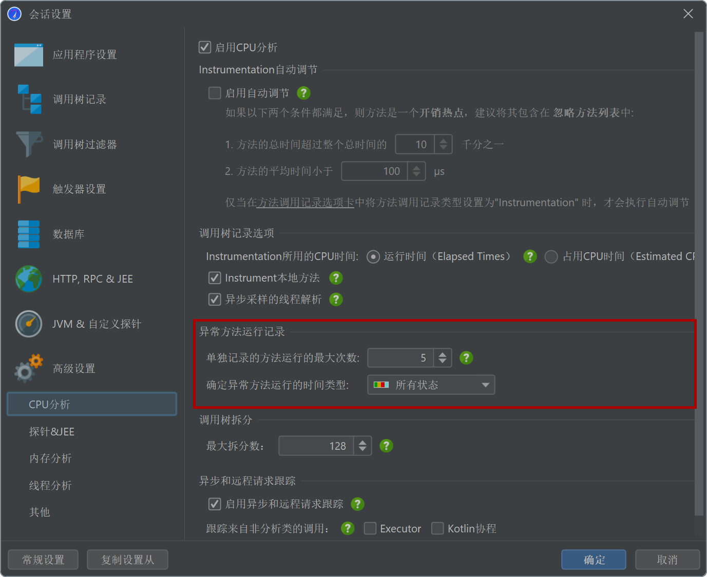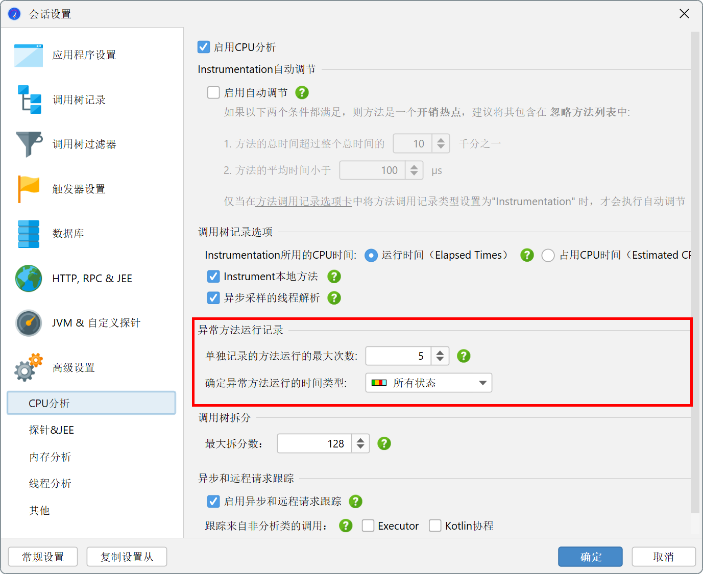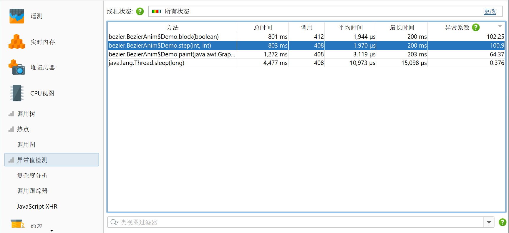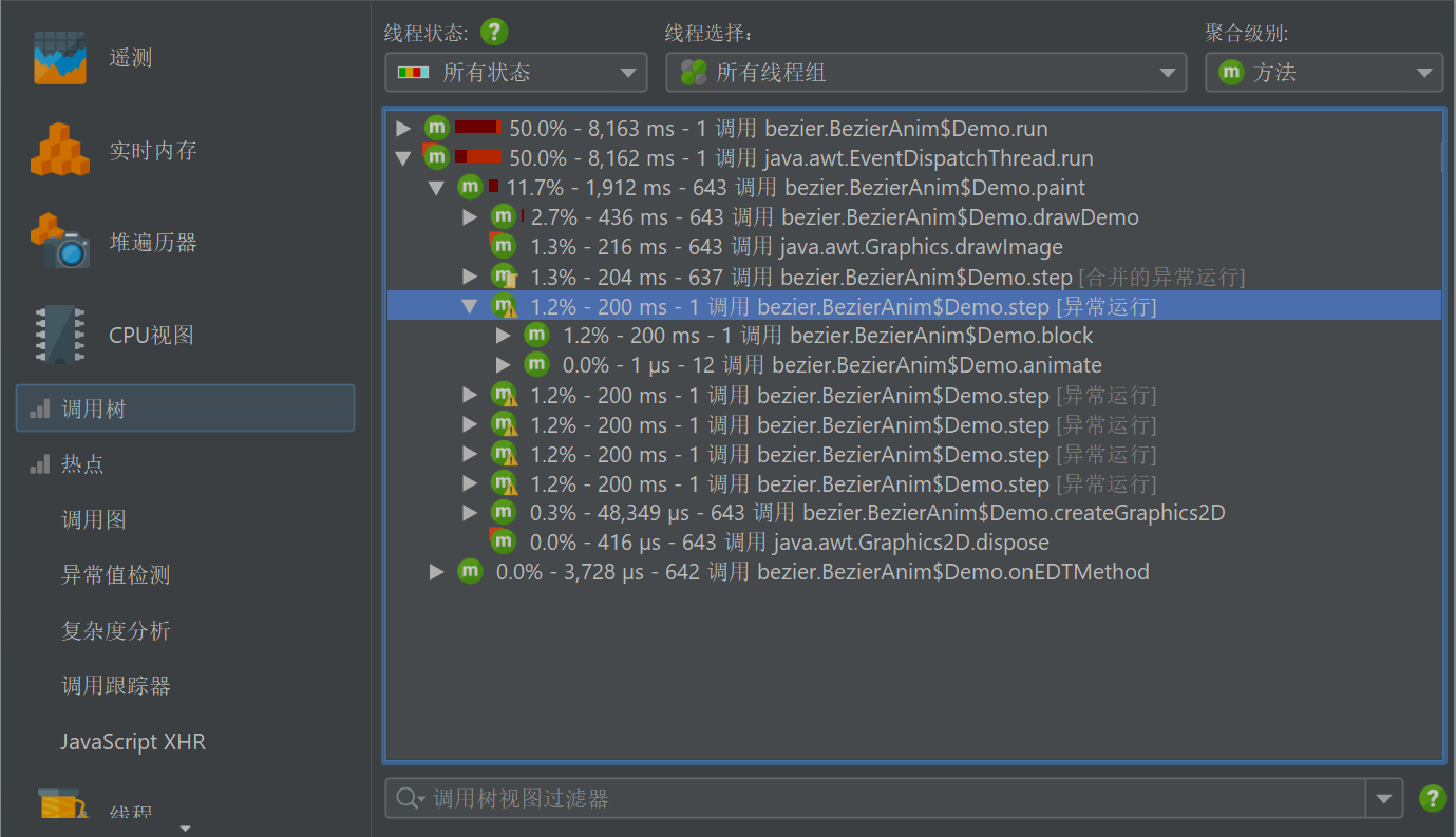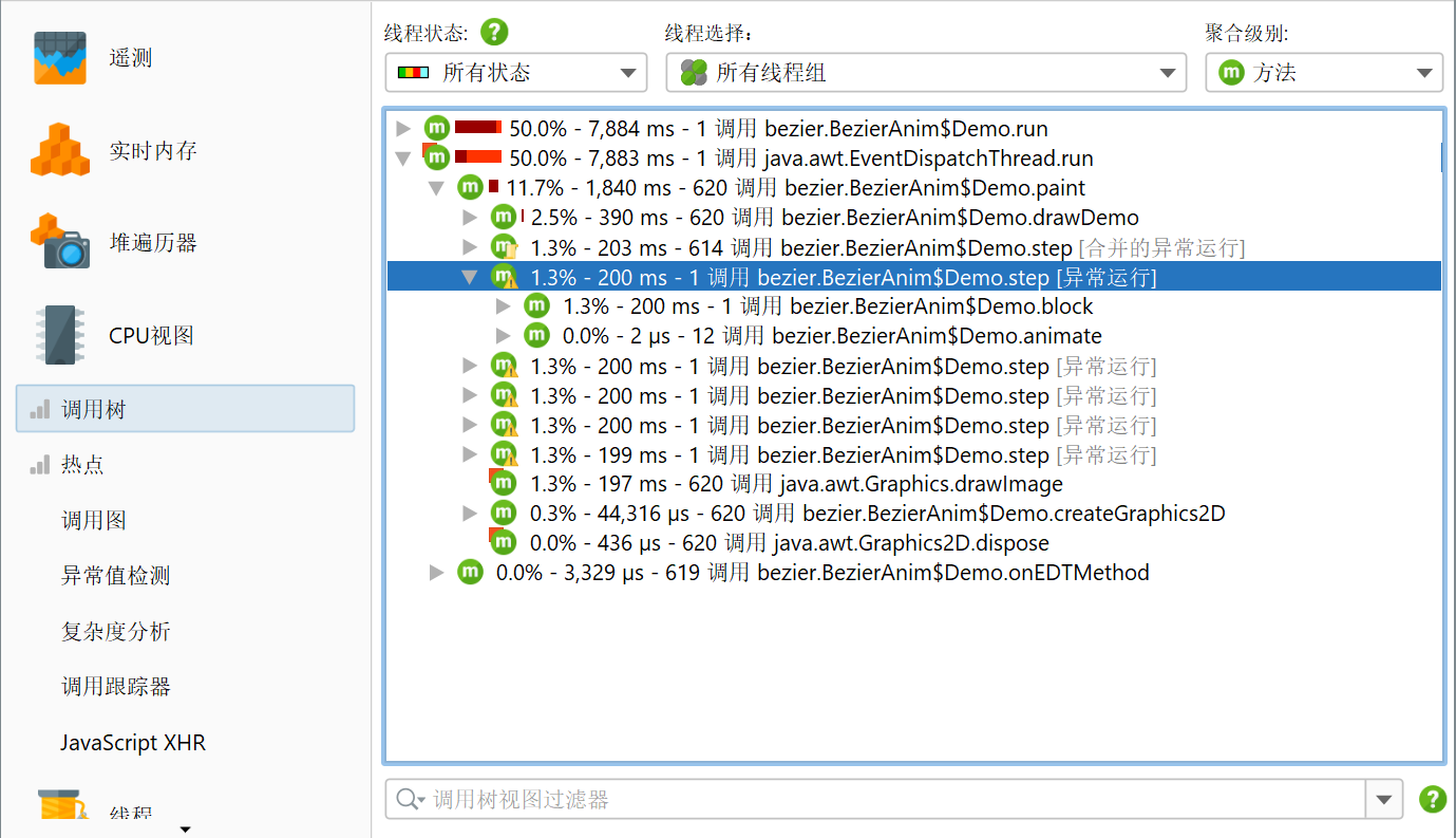 为了解决这个问题,JProfiler在调用树中提供了异常值检测视图和异常方法记录功能。