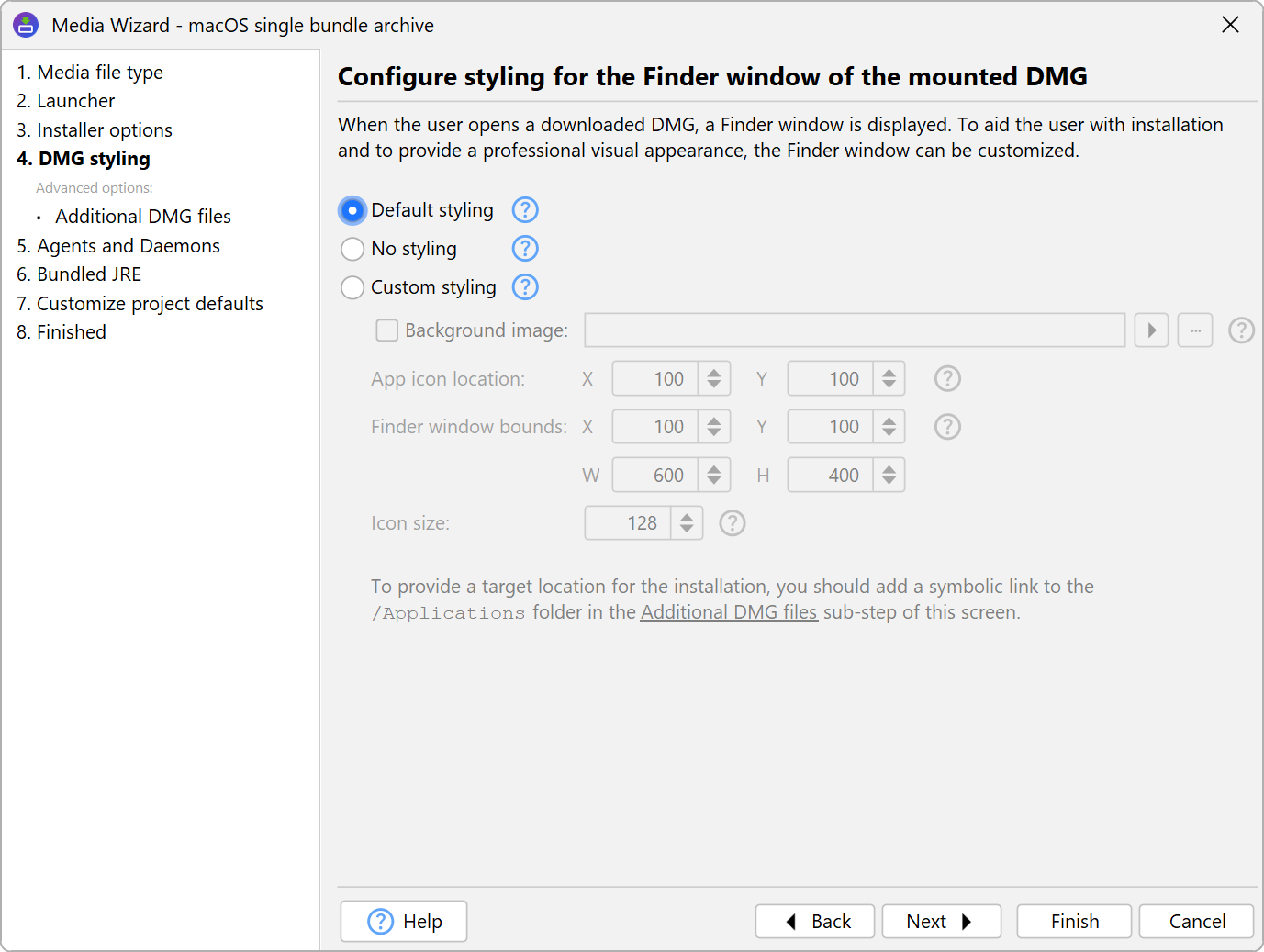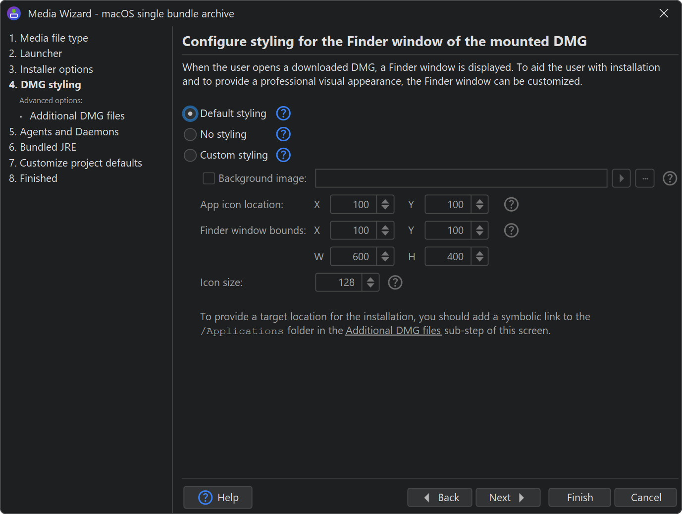 of applying DMG styling in earlier versions of install4j and remains an option for achieving a level of customization