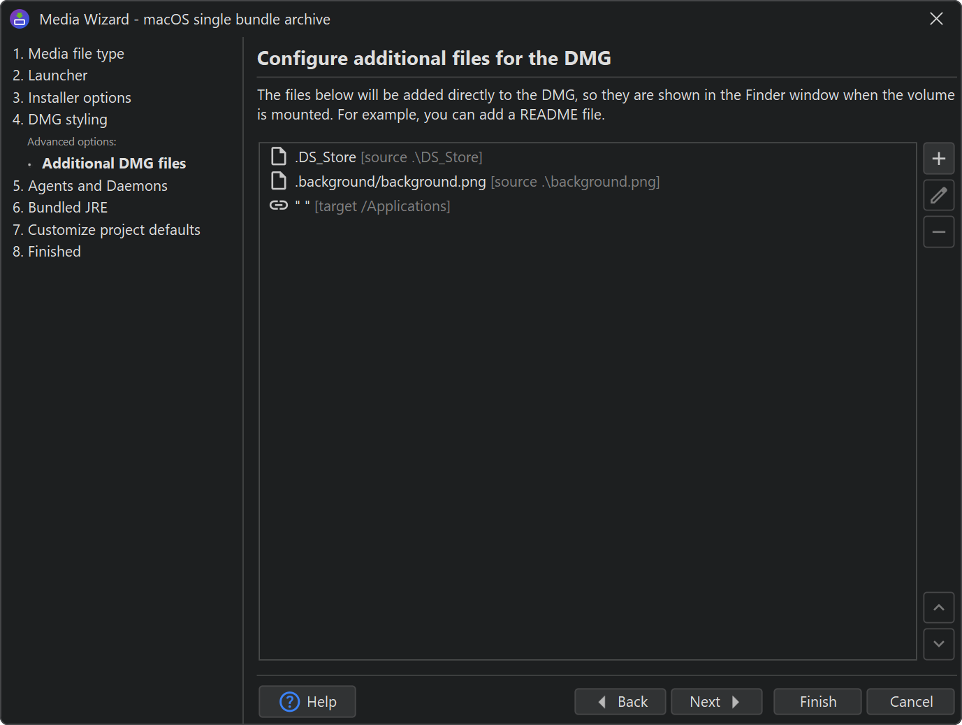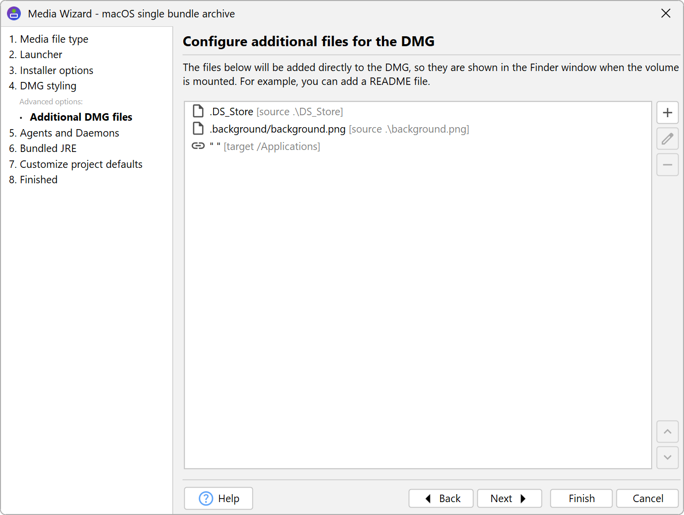 In the media file wizard of the install4j project, we can now use the generated .DS_Store file.