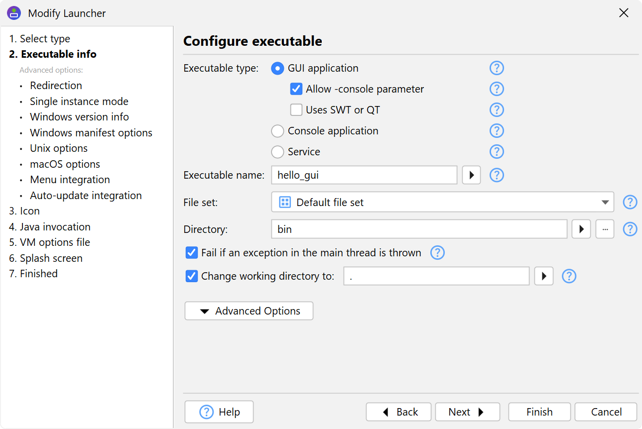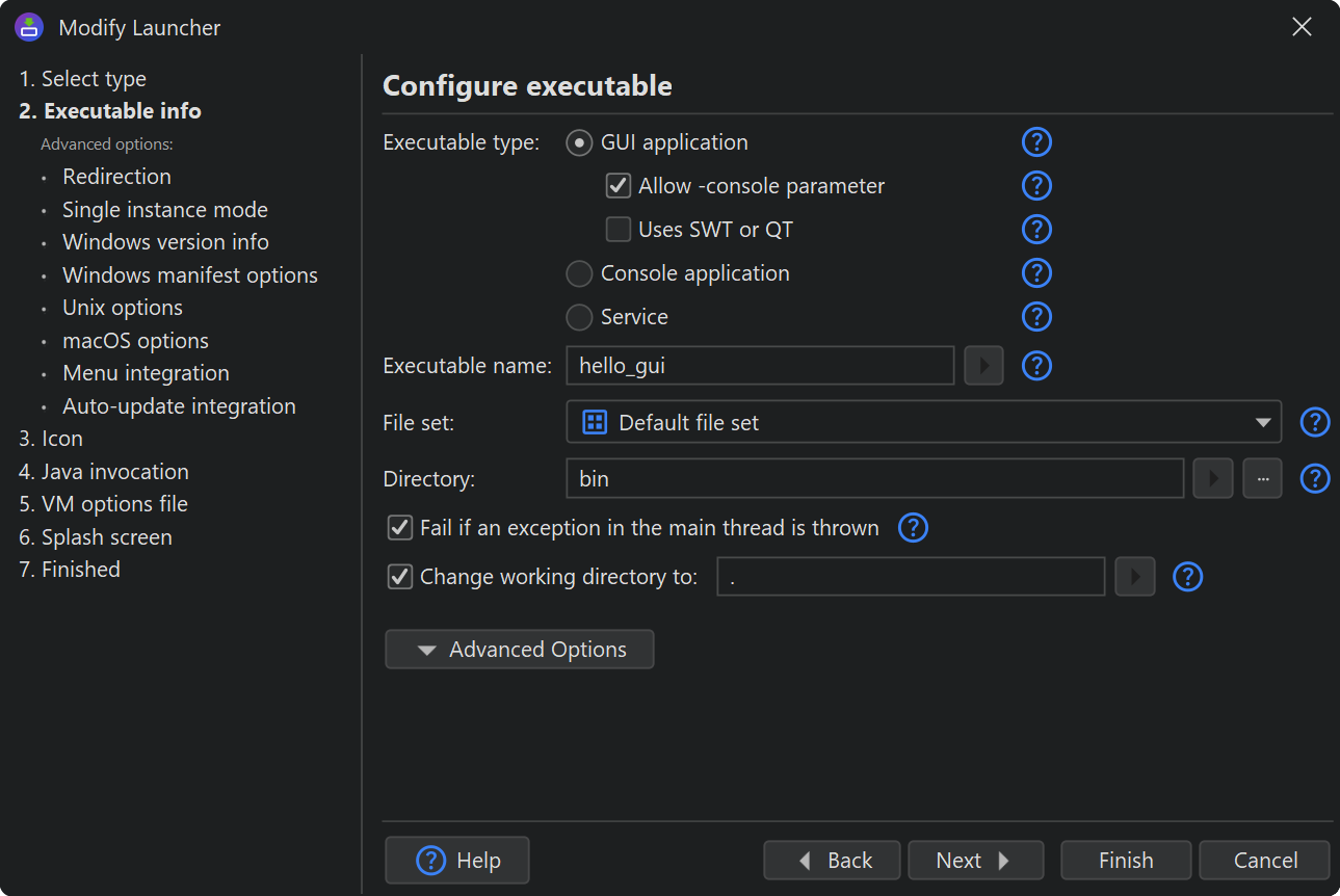 Executables created by install4j can be either GUI applications, console applications or service applications.