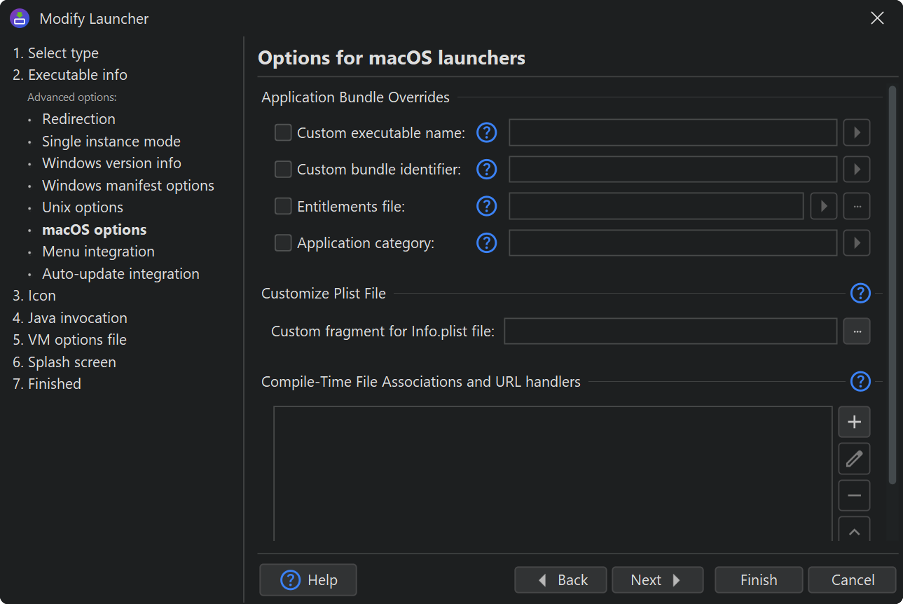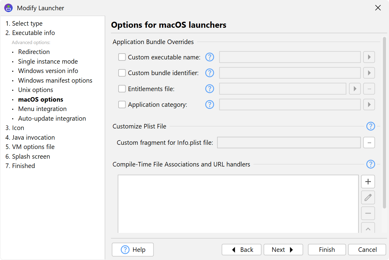 Info.plist file. On the macOS Options step you can specify a fragment that is added to the default