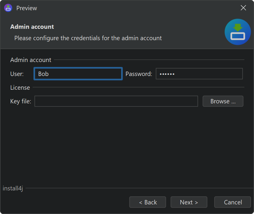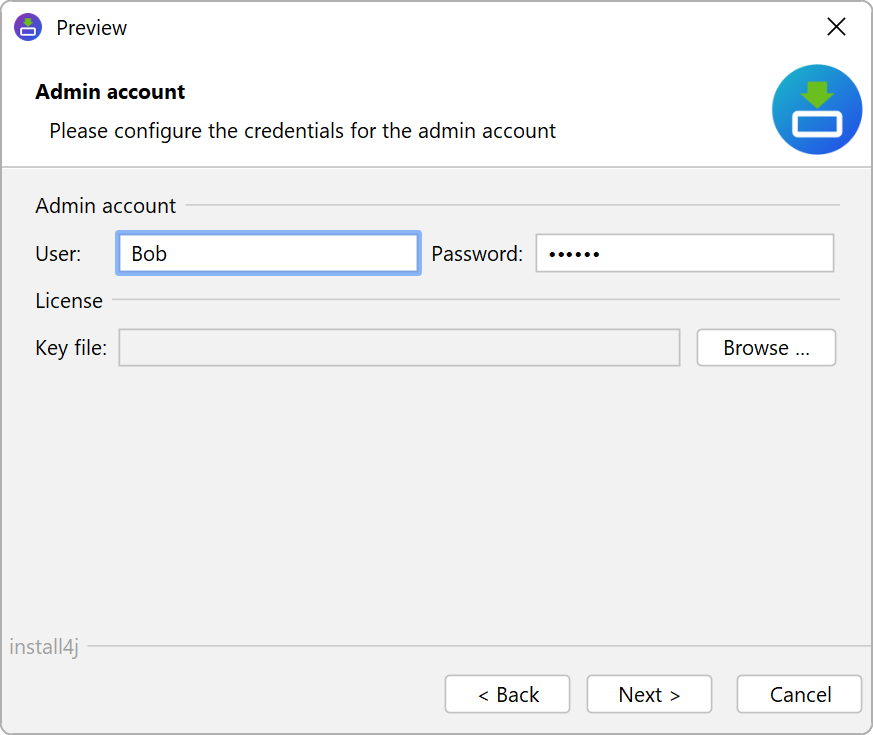 The leading labels of the first form component in the horizontal layout group ("User:") and those of the form components on the same level as the horizontal group ("Key file:") are aligned. There is a property on the horizontal layout group to switch off this alignment.