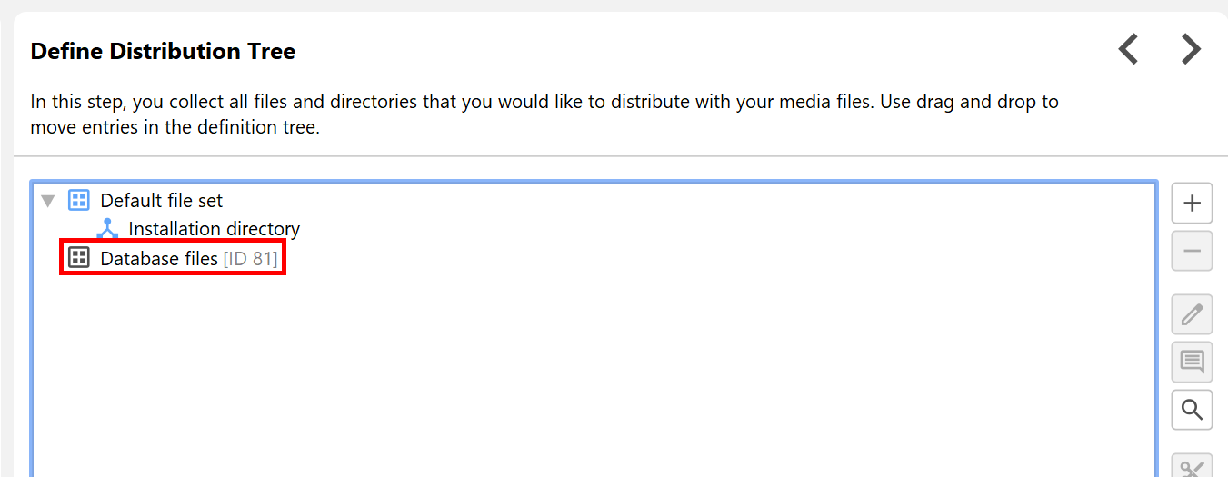 When adding the merged project, you will be asked whether to add that file set automatically to the main project. If file sets change later on, there is an action to repeat this synchronization. After invoking the action, the new file sets are displayed in the definition of the distribution tree.