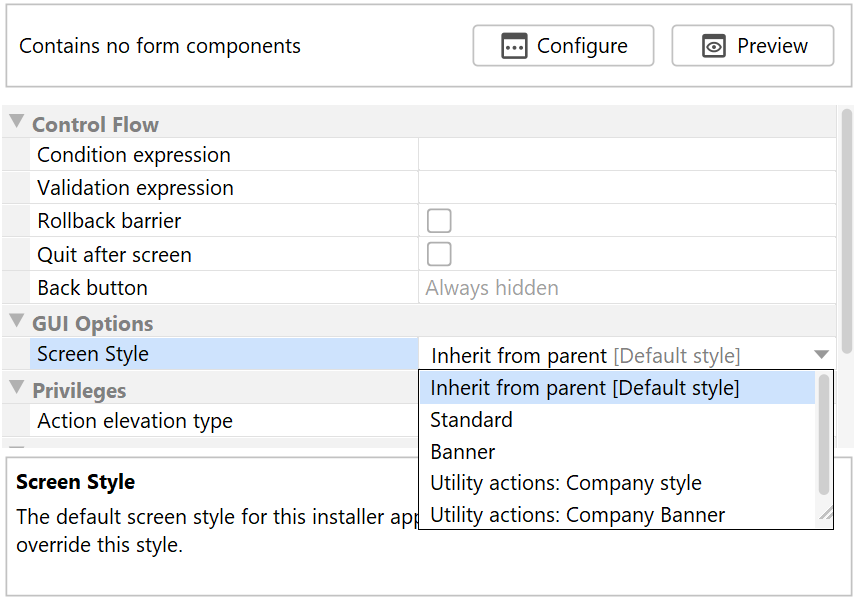 If style merging is enabled, all screen and widget styles from the main project are made available for installer applications, screen groups and screens. This allows you to centrally manage a set of screen and widget styles and re-use it in multiple projects.
