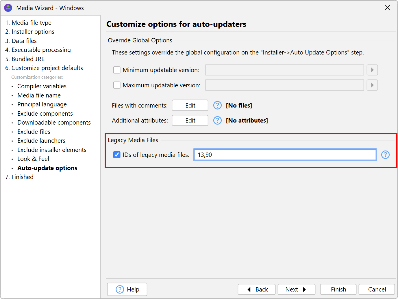 legacy media file setting on the "Customize project defaults->Auto-update options" step of the media wizard.