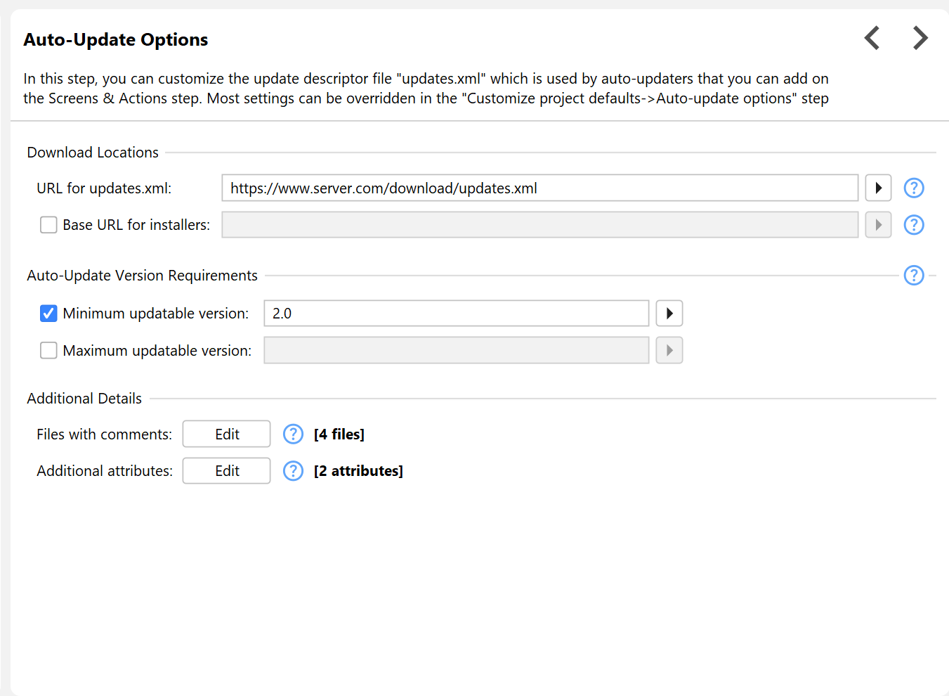 configuring the "Files with comments" setting in the "Installer->Auto-Update Options" step. The main