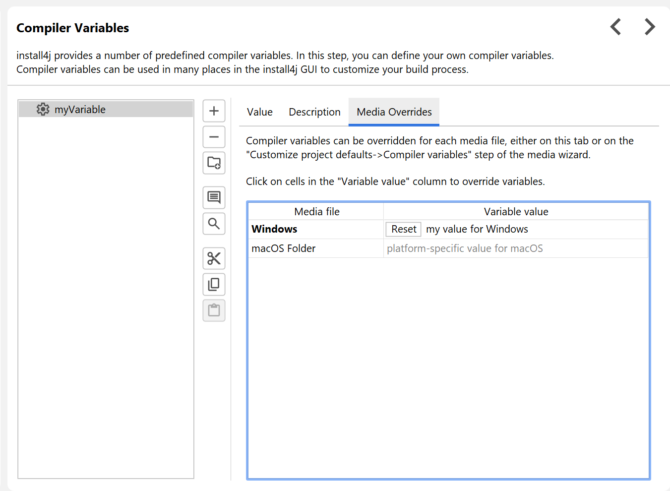 Compiler variables are replaced by the install4j compiler when the project is built. -