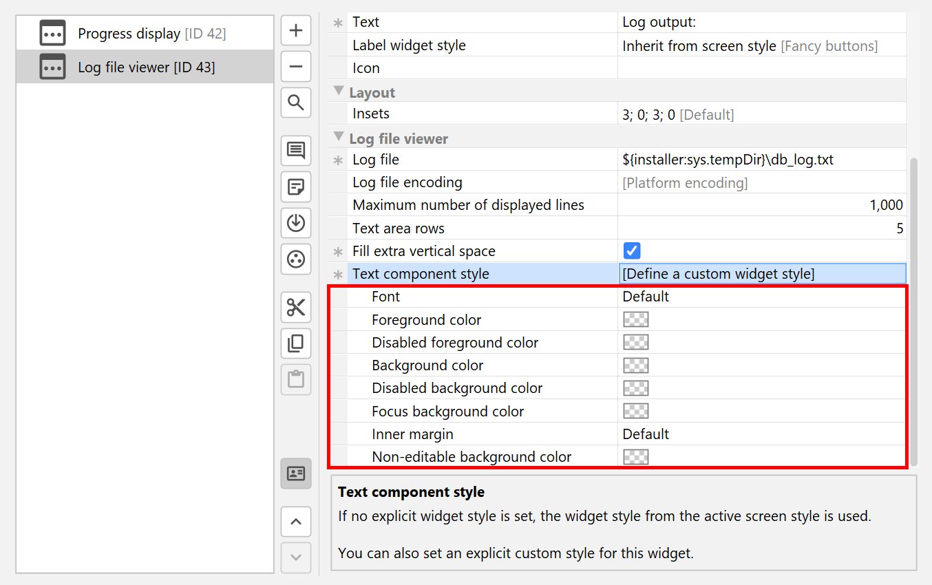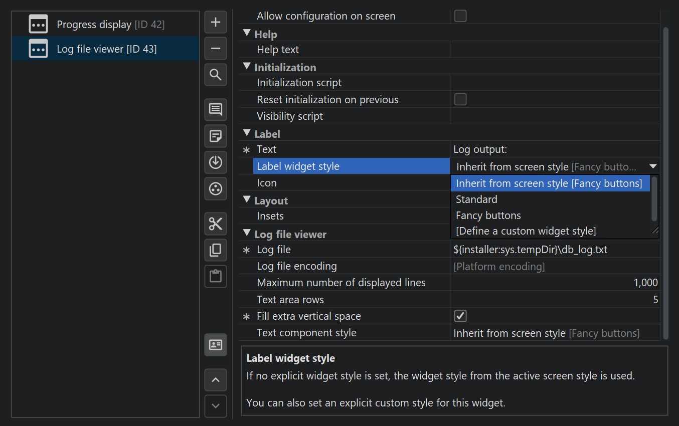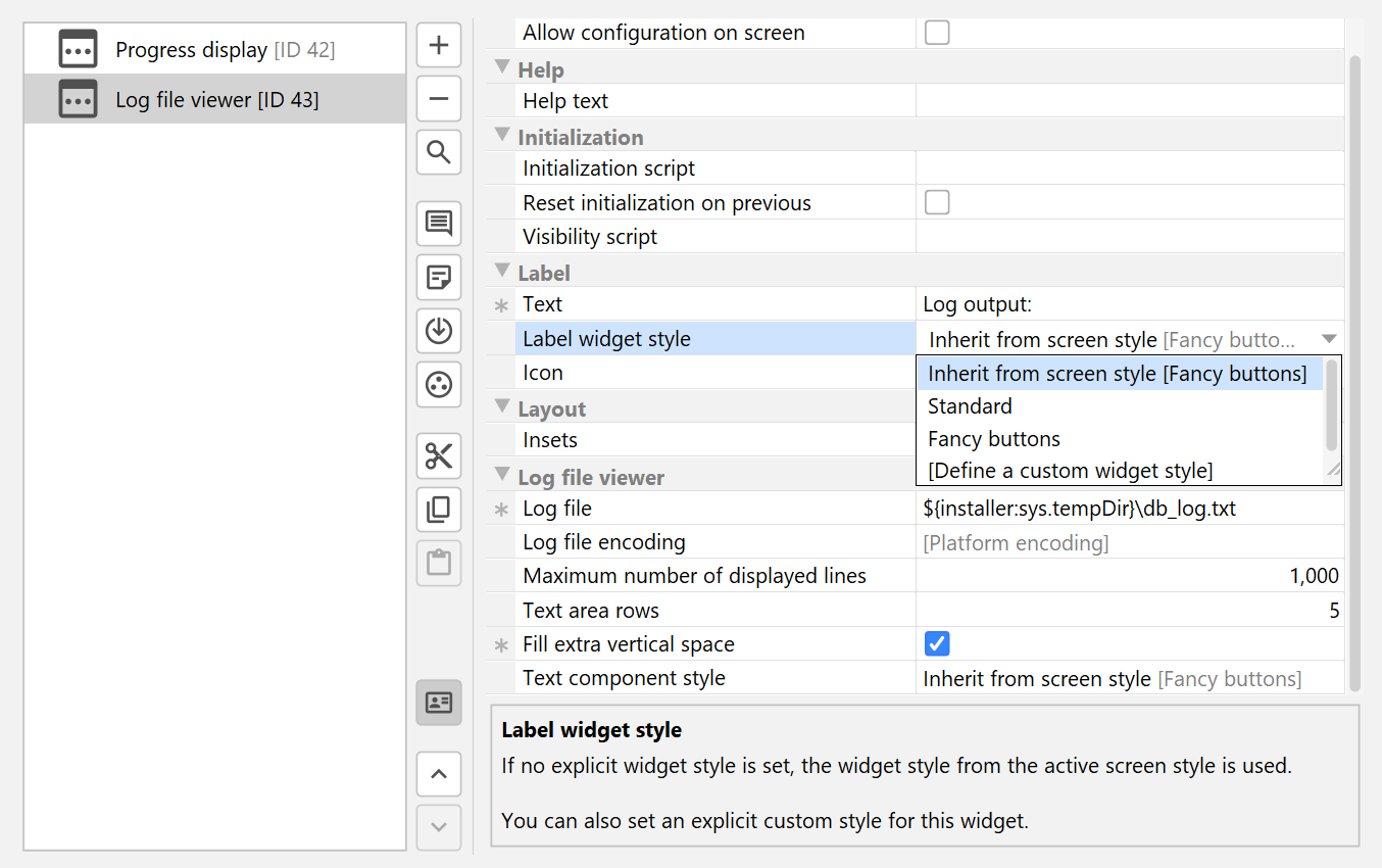 Similar to screen styles, widget styles can be developed in one project and then be merged into other projects. The merge projects functionality in install4j includes an option to merge styles.