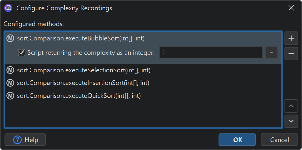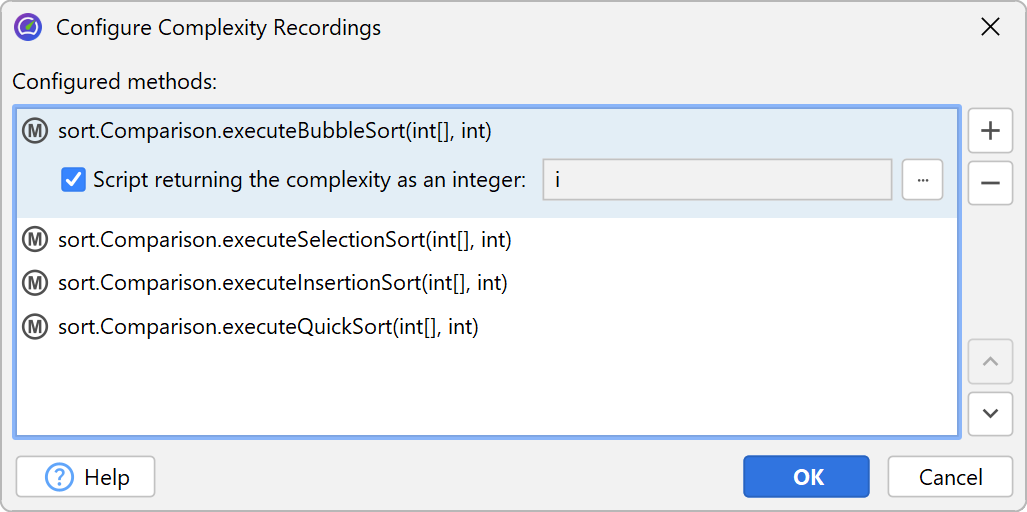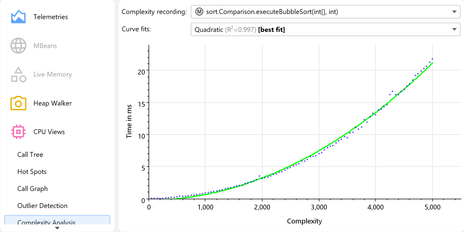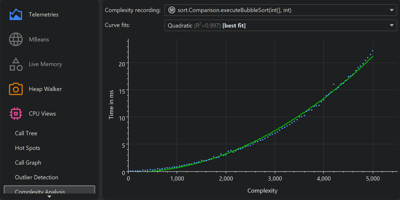 The complexity analysis view allows you to investigate the algorithmic complexity of selected methods depending on their method parameters.