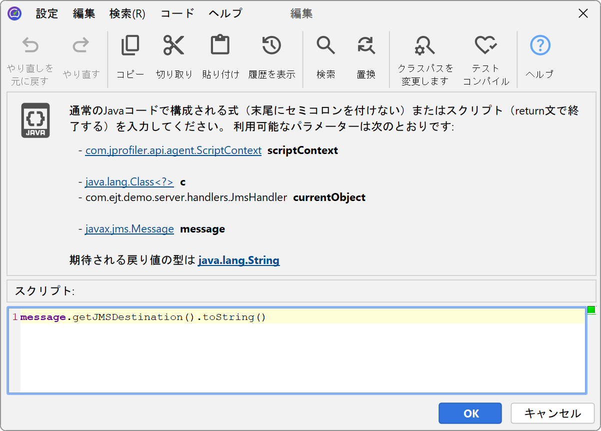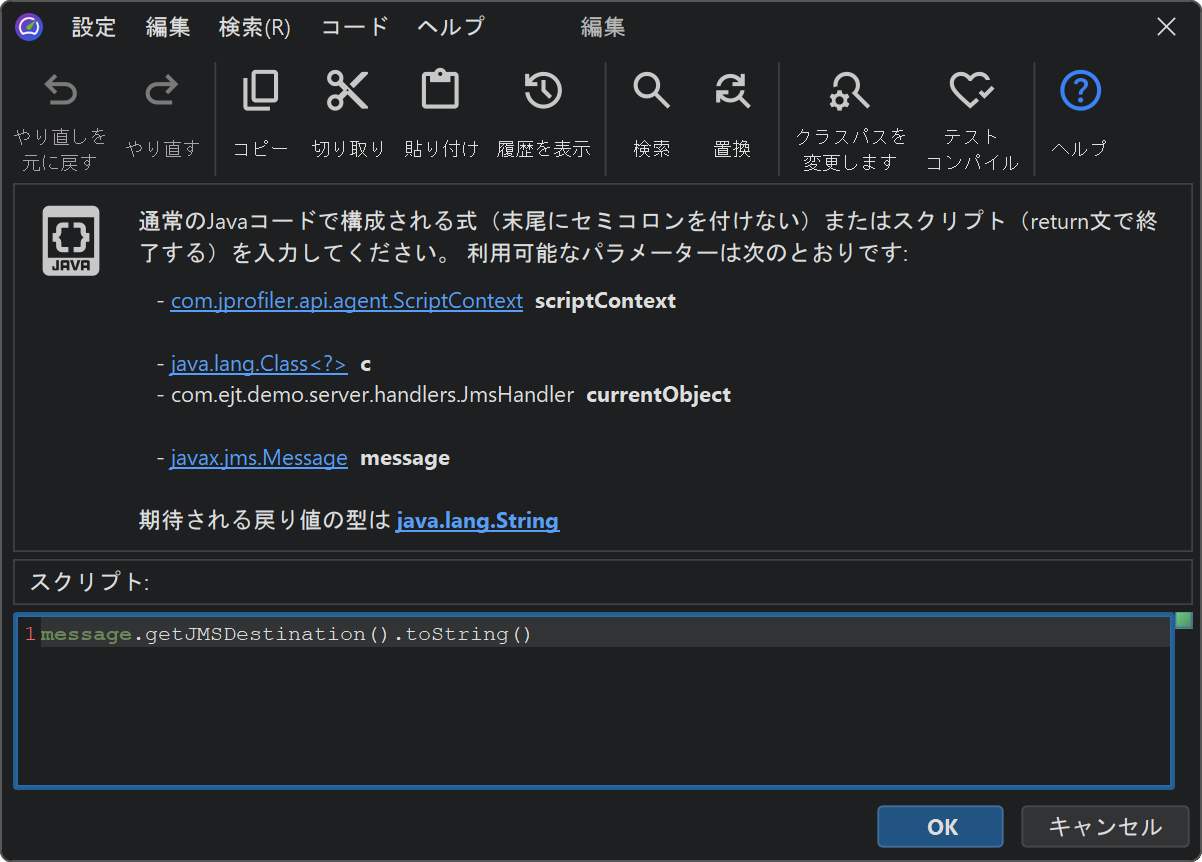 プローブを書く代わりに、文字列を返すスクリプトを入力します。この文字列は、選択したメソッドで呼び出しツリーをグループ化するために使用され、分割ノードに表示されます。nullを返すと、現在のメソッド呼び出しは分割されず、通常通り呼び出しツリーに追加されます。
