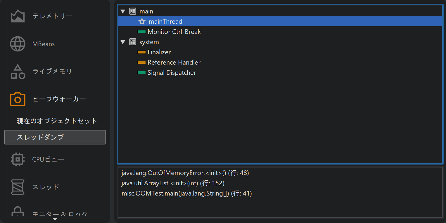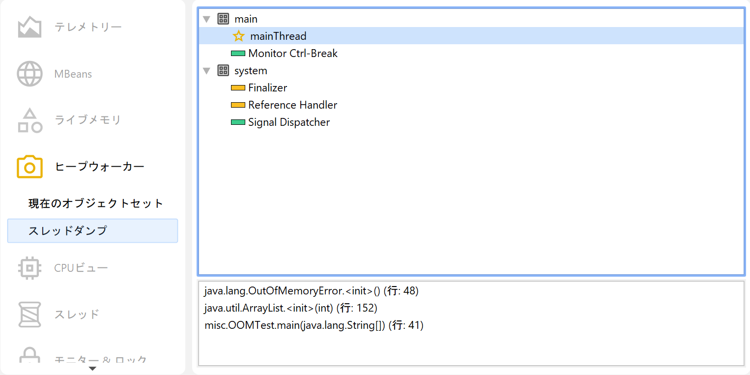 OutOfMemoryErrorの結果として保存された場合、スレッドダンプはエラー発生時にアプリケーションのどの部分が