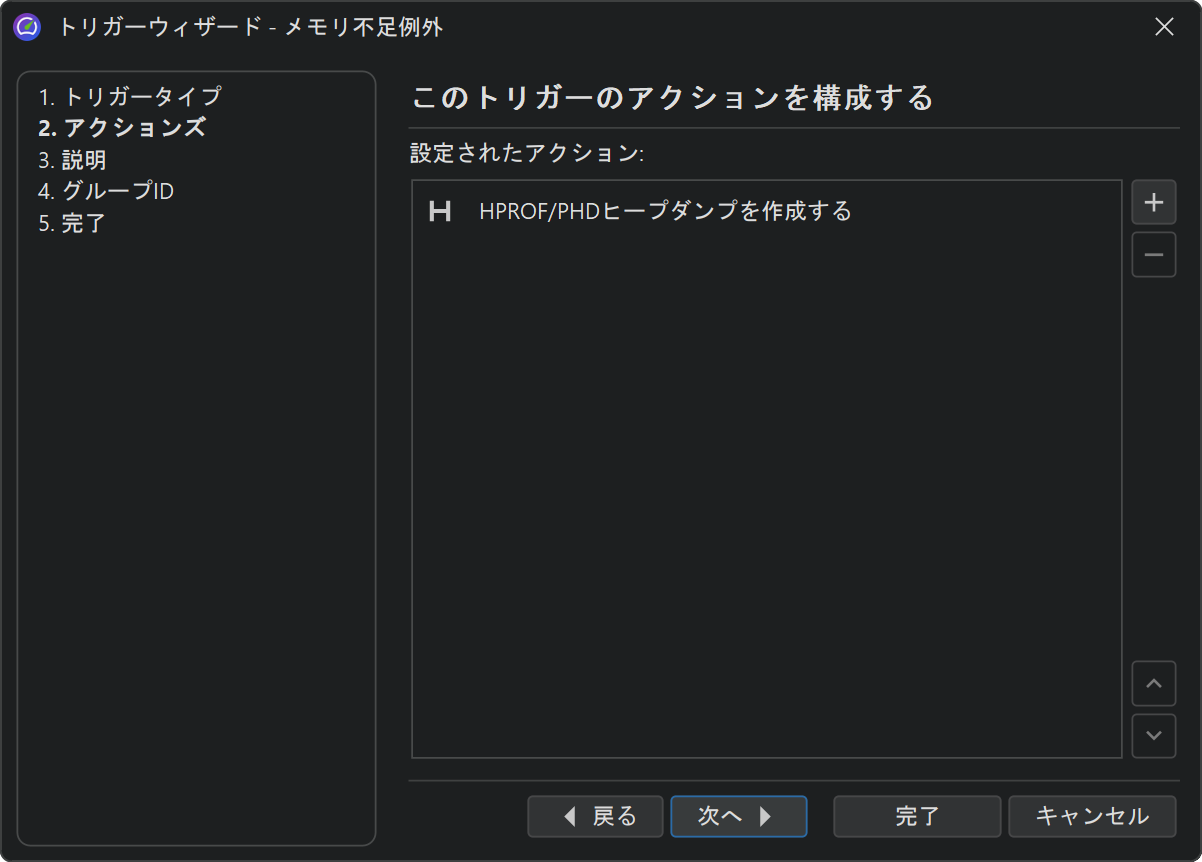 オフラインプロファイリングの場合、「HPROFヒープダンプを作成する」トリガーアクションがあります。