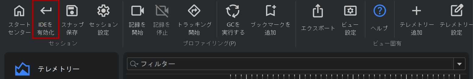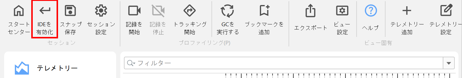 特定のクラスやメソッドを意識せずIDEに切り替えたい場合もあります。そのために、JProfilerウィンドウのツールバーには