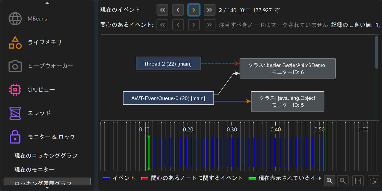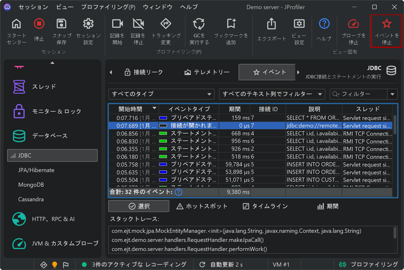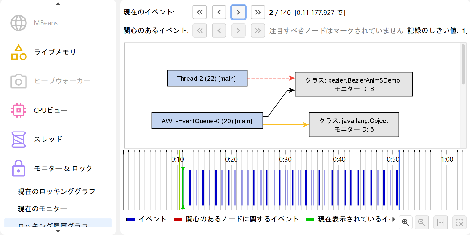 割り当て記録やメソッドコール記録と同様に、プローブデータは累積され、時系列情報はタイムラインやテレメトリーを除いて破棄されます。ただし、ほとんどのプローブには「イベント」ビューもあり、単一のイベントを調査できます。これにより、潜在的に大きなオーバーヘッドが追加され、別の記録アクションがあります。その記録アクションのステータスは永続的であるため、プローブ記録を切り替えると、以前にオンにしていた場合は関連するイベント記録も切り替わります。