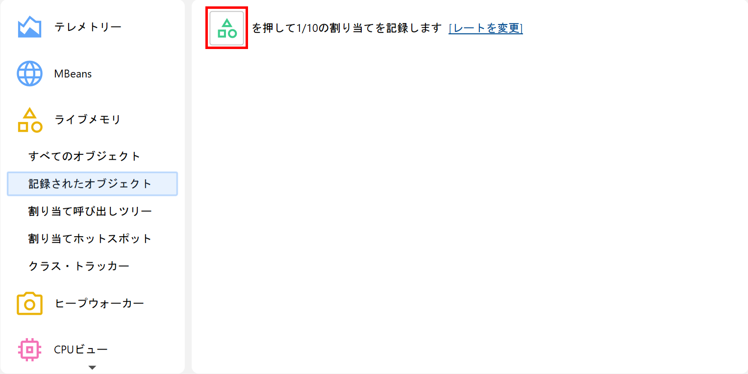 特定の時間間隔に割り当てられたインスタンス数に興味がある場合、JProfilerはすべての割り当てを追跡する必要があります。「すべてのオブジェクト」ビューとは異なり、JProfilerはヒープ内のすべてのオブジェクトを反復して情報をオンデマンドで取得できますが、単一の割り当てを追跡するには、各オブジェクト割り当てに対して追加のコードを実行する必要があります。これにより、非常に高価な測定が行われ、特に多くのオブジェクトを割り当てる場合、プロファイルされたアプリケーションのランタイム特性、特にパフォーマンスホットスポットを大幅に変更する可能性があります。これが、割り当て記録を明示的に開始および停止する必要がある理由です。