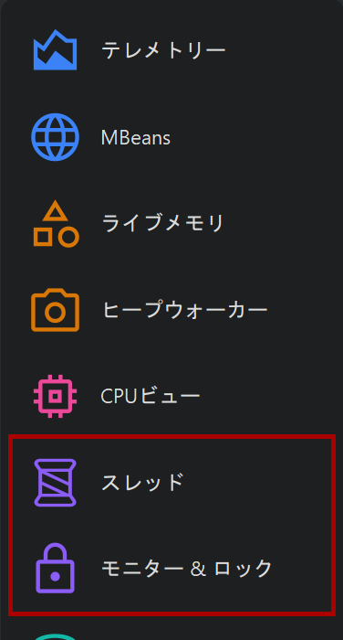 JProfilerでは、スレッドプロファイリングは2つのビューセクションに分かれています。「Threads」セクションはスレッドのライフサイクルやスレッドダンプの取得を扱います。「Monitors & locks」セクションは、複数スレッドの相互作用を分析するための機能を提供します。