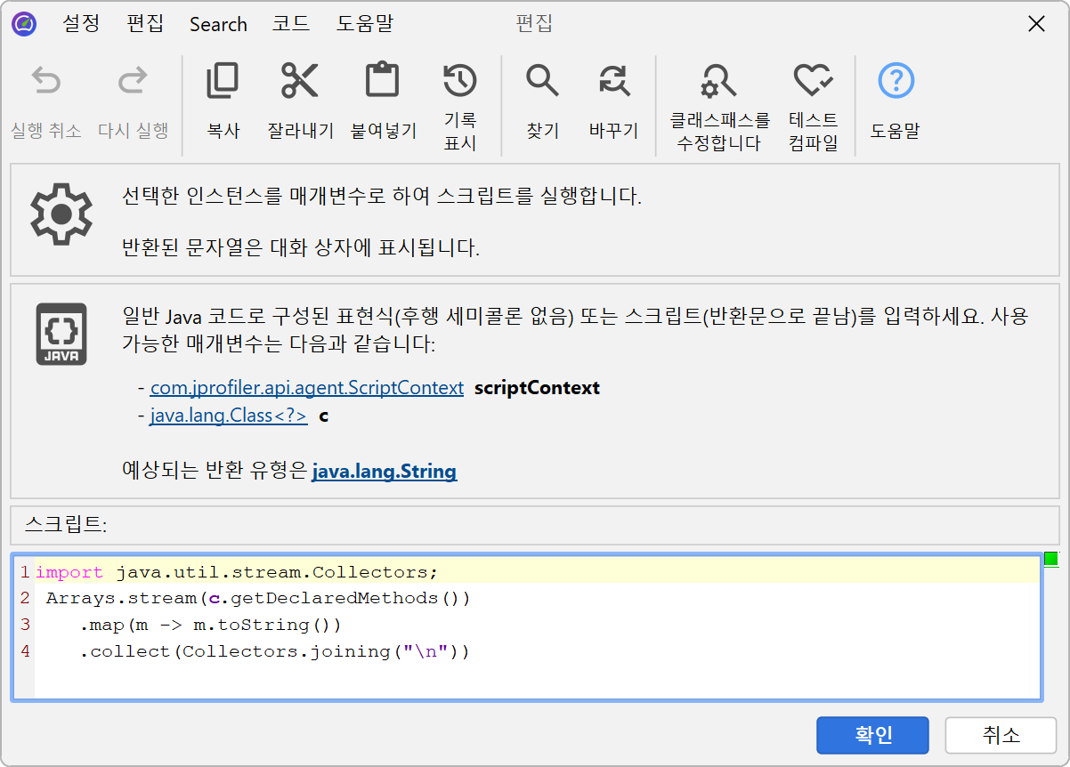com.jprofiler.api.agent.heap.HeapObject의 인스턴스로 스크립트에 전달됩니다. 해당되는 경우 매개변수를 다운캐스트할 수 있는 여러 하위 인터페이스가