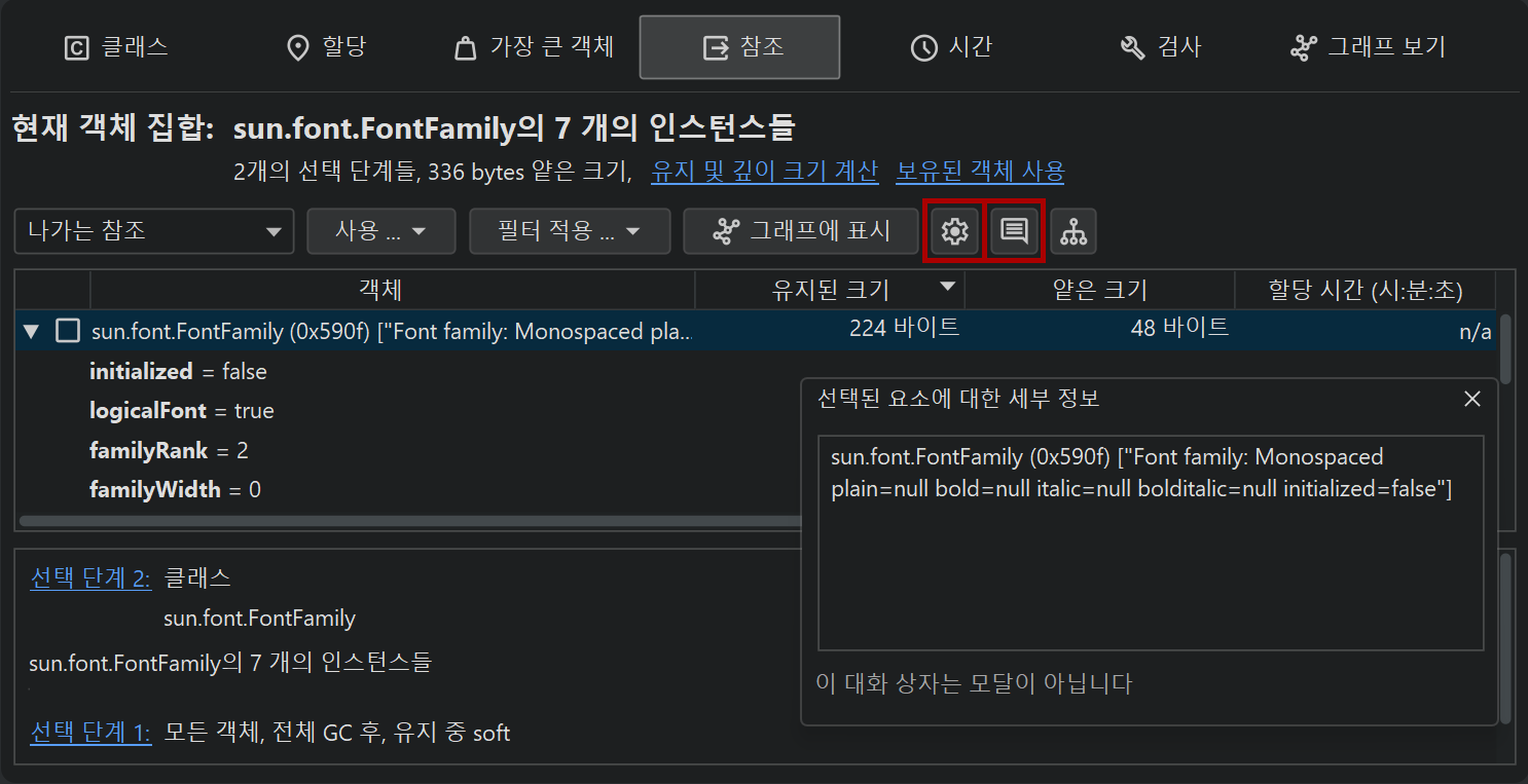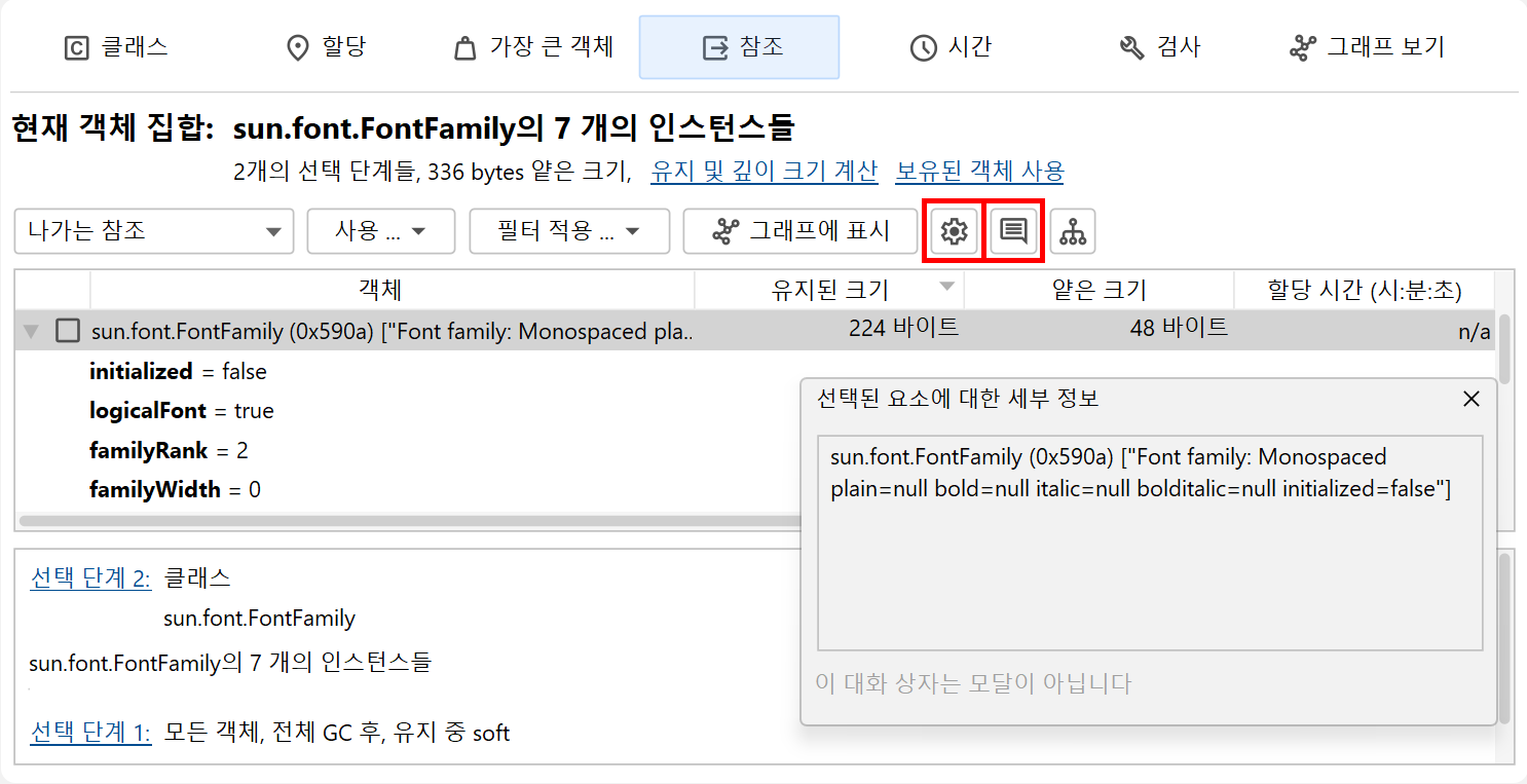 java.lang.Class 객체를 제외하고는 라이브 세션에서만 사용할 수 있으며, JProfiler는 이를 스스로 파악할 수 있습니다.
