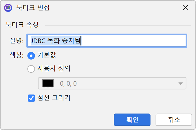 북마크에는 색상, 선 스타일, 그리고 툴팁에 표시되는 이름이 있습니다. 기존 북마크를 편집하여 이러한 속성을 변경할 수 있습니다.
