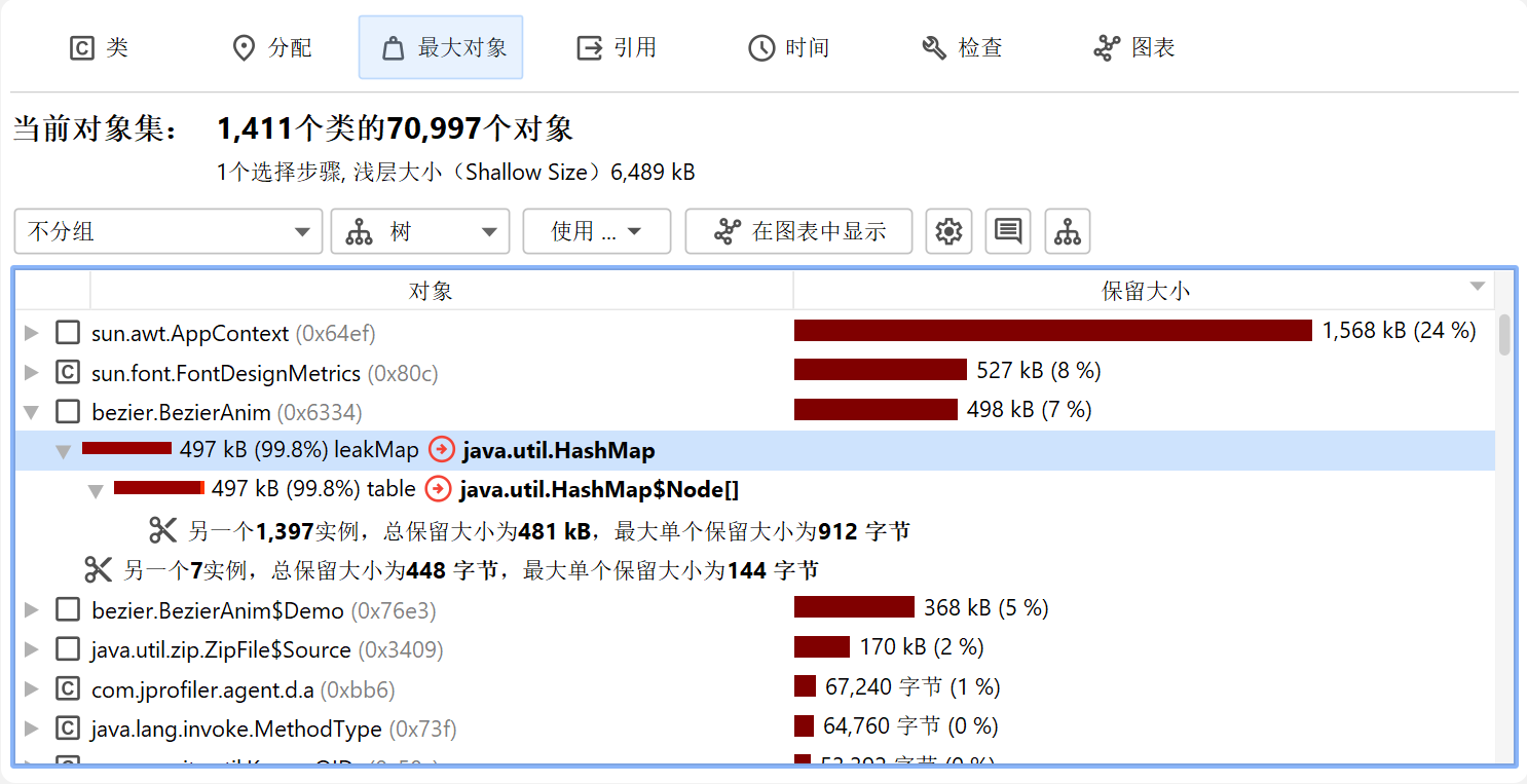 分析最大对象