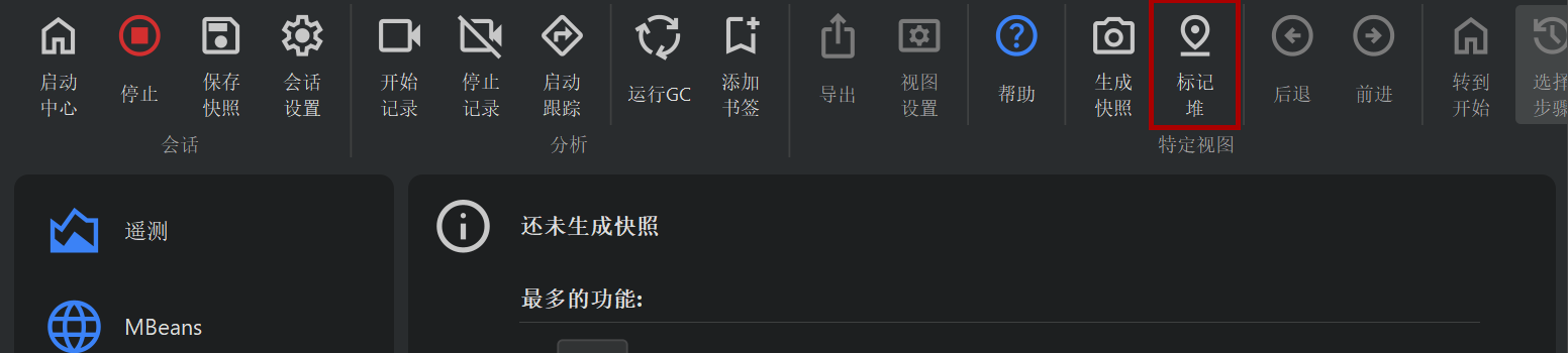 对内存泄漏的任何深入分析都需要在堆漫游器中进行。要详细调查特定用例周围的内存泄漏,"标记堆"功能最为合适。它允许您识别自特定先前时间点以来仍留在堆中的新对象。对于这些对象,您必须检查它们是否仍然合法地留在堆中,或者是否有错误的引用使它们保持活动状态,即使对象不再有任何用途。