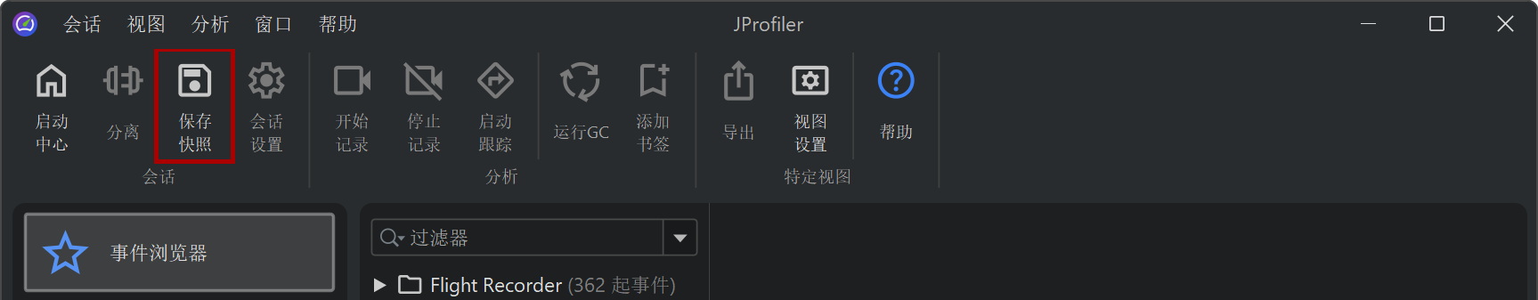JFR的一个提到的用途是调查崩溃前的时刻。在这种情况下,JVM将不再在JVM表中可用以停止JFR记录并打开JFR快照。 如果在JProfiler中启动了JFR记录,并且在您停止记录之前JVM终止,则将在JVM表中添加一个以"Terminated JFR:"为前缀的特殊条目。 通过双击该条目或使用"JFR"按钮,您可以打开JFR快照。