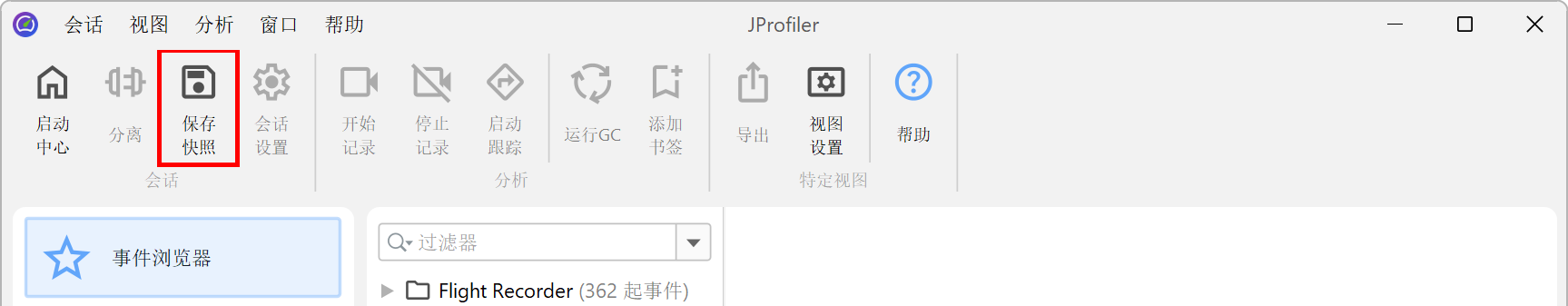 当您停止由JProfiler启动的JFR记录时,JFR快照将被传输并在JProfiler中打开。快照是临时的,关闭窗口时将被删除。 要将快照保存到永久位置,请使用工具栏中的"Save snapshot"操作。