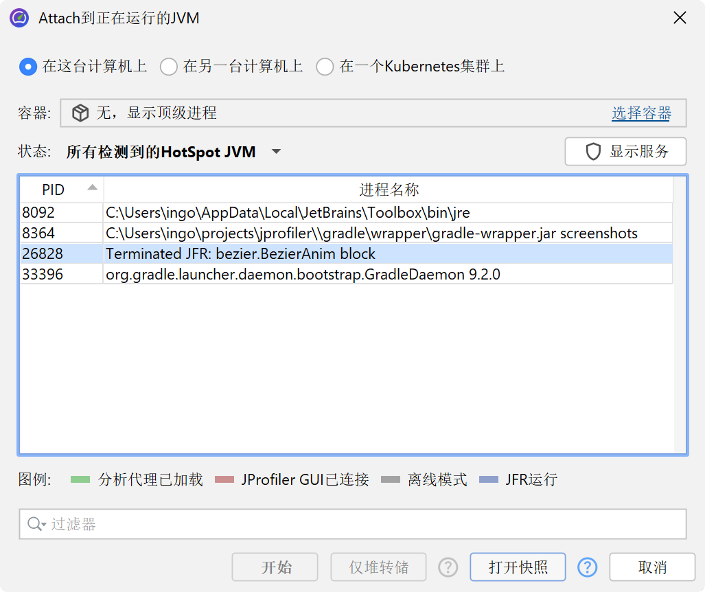 但JProfiler可以帮助您启动和停止已运行JVM的记录。