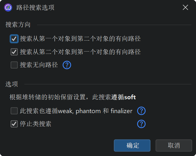 如果存在弱引用对象,可以通过堆遍历器中的“Weak reference”检查项将其选中或从当前对象集中移除。