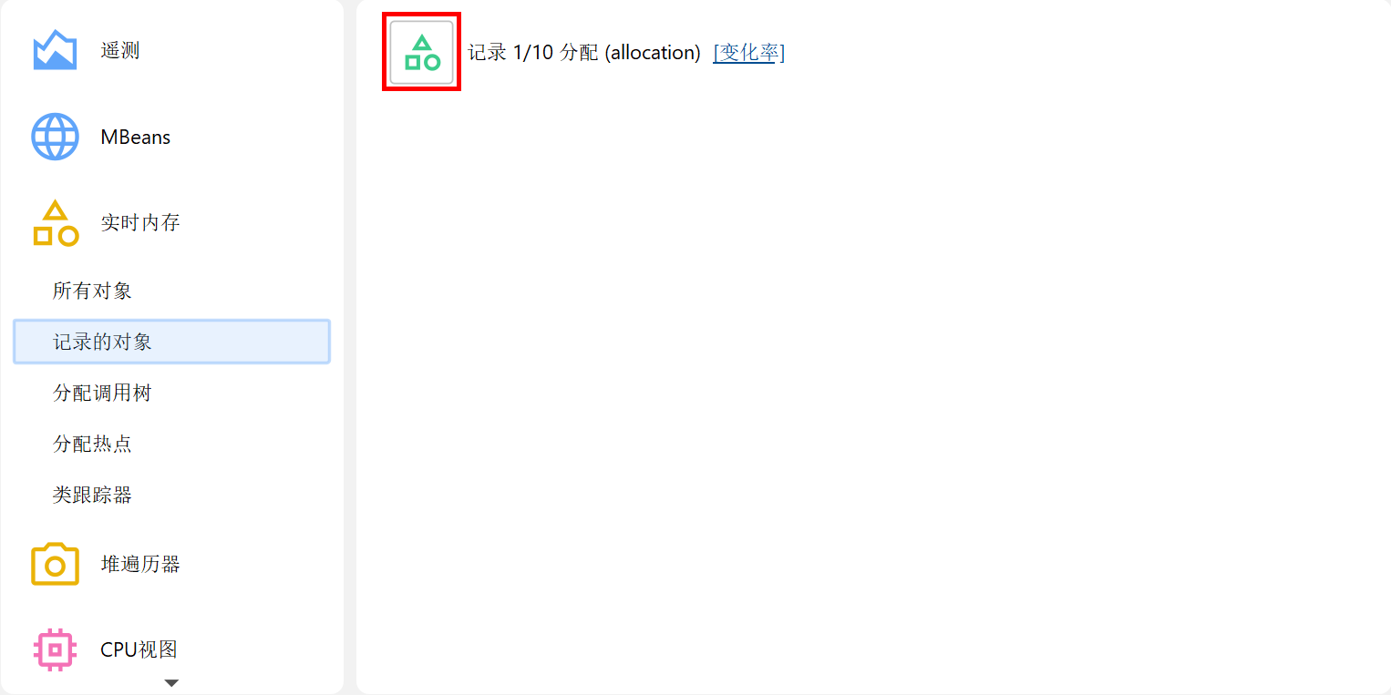 如果您关注某个时间区间内被分配 (allocated) 的实例数,JProfiler需要跟踪所有分配 (allocation)。与“All objects”视图中JProfiler可以按需遍历堆中所有对象不同,跟踪单个分配 (allocation) 需要为每次对象分配 (allocation) 执行额外代码。这使得该测量非常昂贵,可能显著改变被分析 (profiled) 应用的运行时特性,比如性能热点 (hot spot),尤其是在您频繁分配 (allocate) 对象时。因此,分配 (allocation) 记录需要显式地启动和停止。