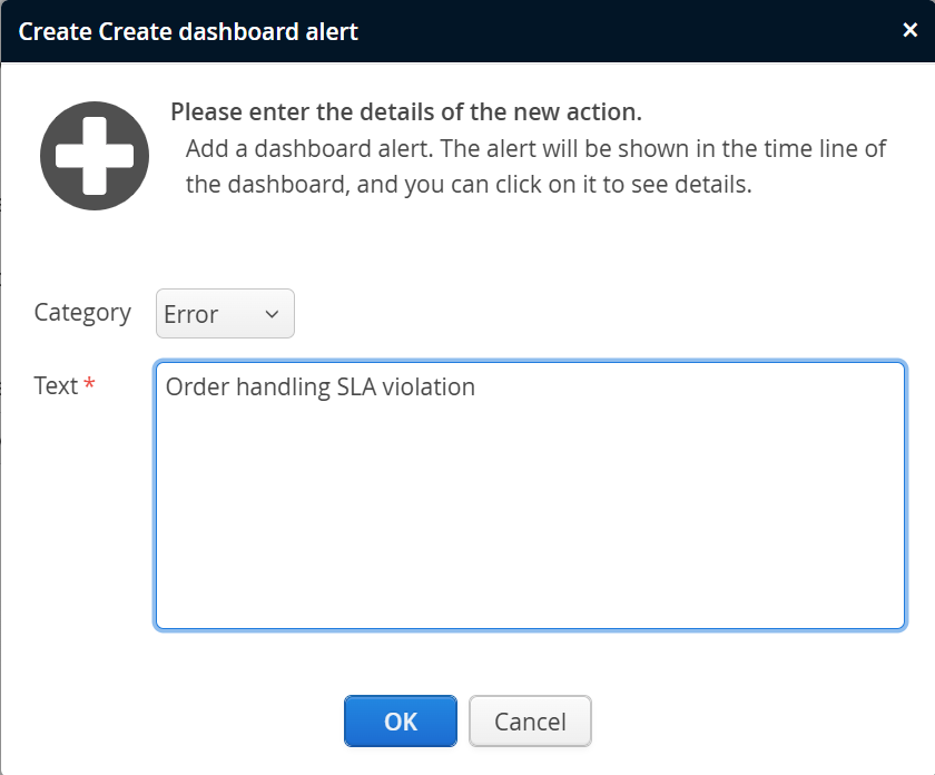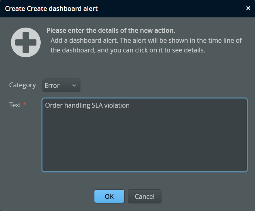 When configuring the "Create dashboard alert" action you can specify a category. This selection determines the color of the alert bars in the dashboard: