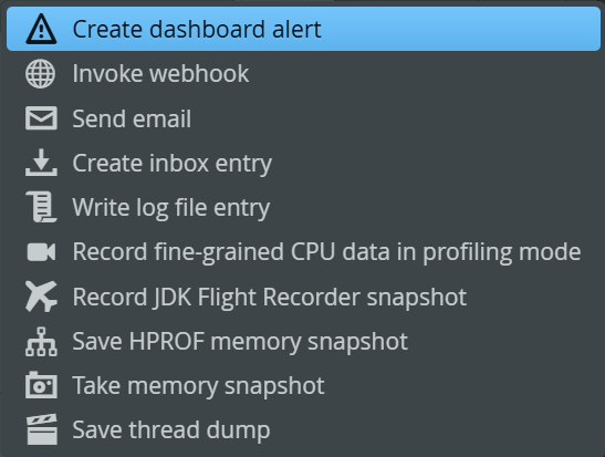 Notifications can be created for consumption inside perfino. Apart from the alerts mechanism, you can write to the log file or to the inbox. Alerts are visible in the dashboard and are saved as historical data. The inbox is maintained for each user and has an "unread status" on a per-user basis. Externally, you can send emails or invoke webhooks. For sending emails, the SMTP configuration in the general settings has to be valid.