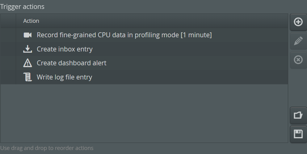 In some cases, triggers are fired too often. For that case, perfino allows you to disable a trigger until you have time to figure out how to change the underlying configuration.