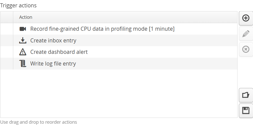 Like for transaction definitions and other entities in perfino, triggers can be saved to and loaded from trigger sets. This enables you to copy and paste trigger definitions as starting points to multiple VM groups.