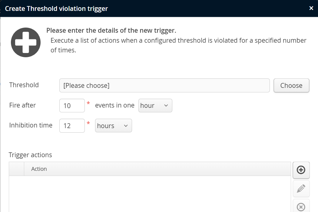 Like for the policy trigger, the trigger condition does not define an actual threshold. Thresholds can be defined differently in different descendant VM groups, and the threshold trigger then counts threshold violations.
